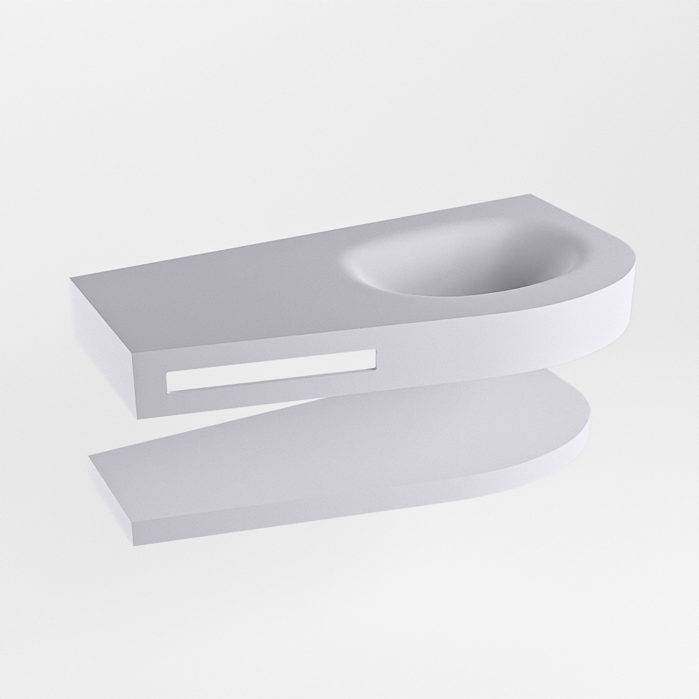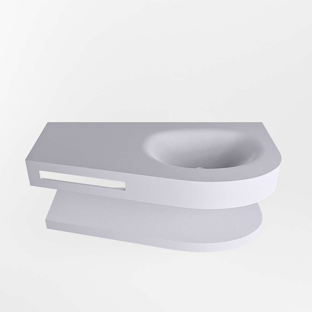 MONDIAZ RIVA 100cm lavabo con estante color Cale. Lavabo DULCET Derecho sin orificio, color Cale.