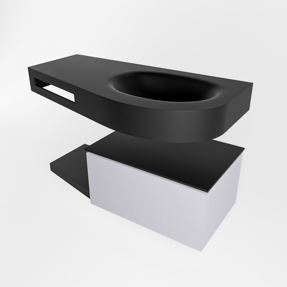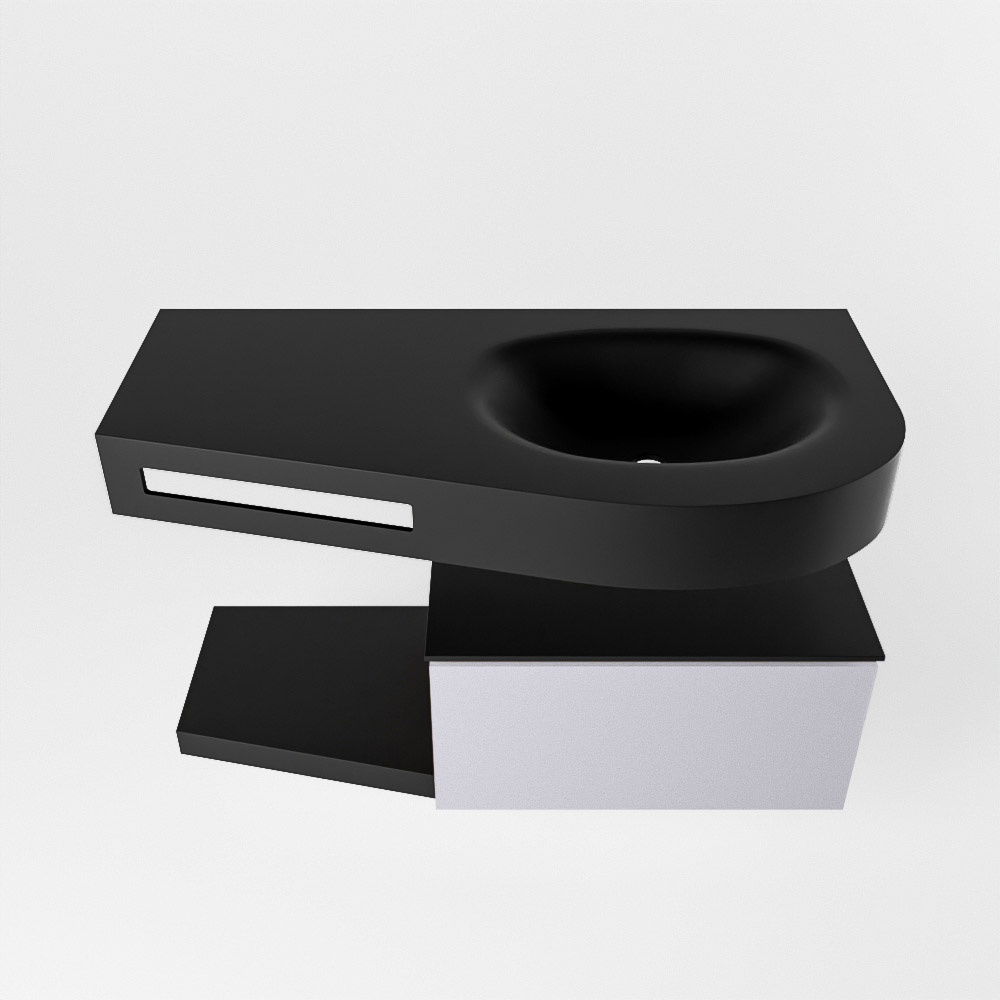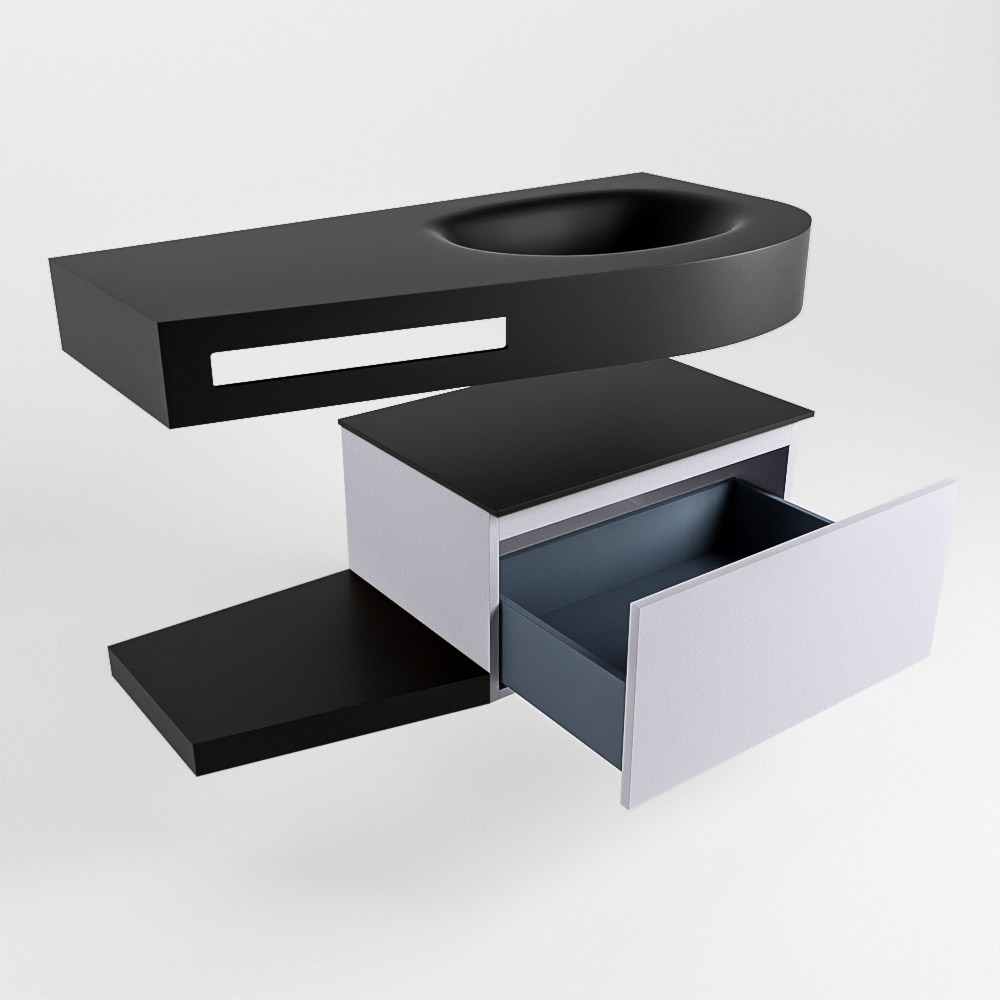 MONDIAZ RIVA 100cm mueble de baño / estante color Cale con 1 cajón. Lavabo DULCET Derecho sin orificio, color Urban.
