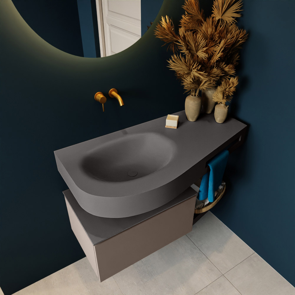 MONDIAZ RIVA 100cm mueble de baño / estante color Smoke con 1 cajón. Lavabo DULCET Izquierda sin orificio, color Dark Grey.