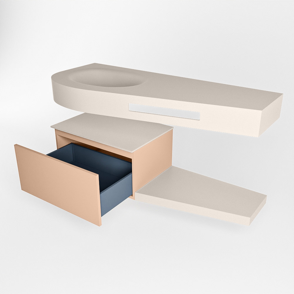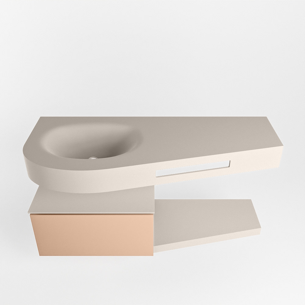 MONDIAZ RIVA 120cm mueble de baño / estante color Rosee con 1 cajón. Lavabo DULCET Izquierda 1 orificio, color Linen.