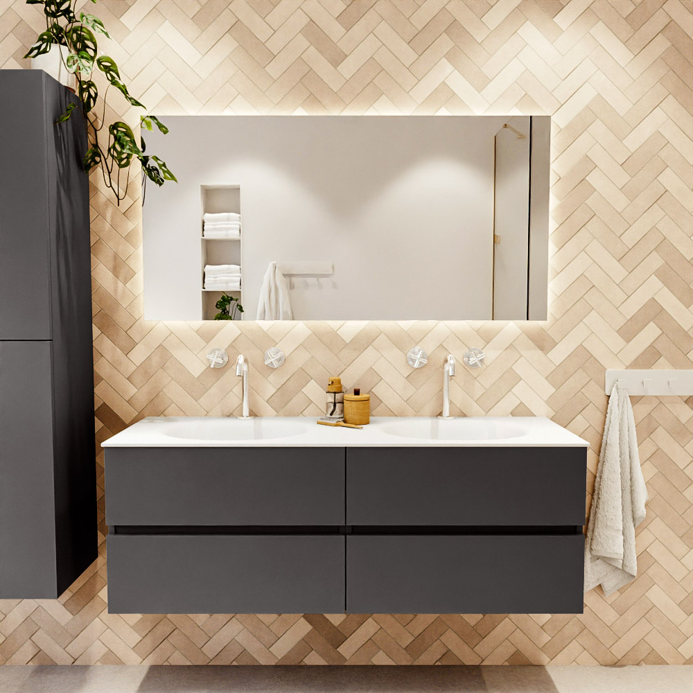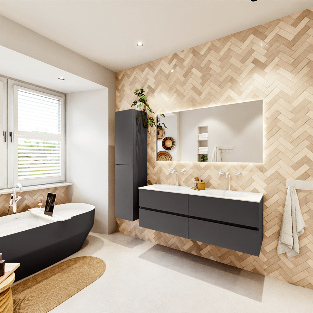 Ya sea que elija un color o un acabado de madera, un mueble de baño a medida, con o sin agujeros para grifos, el conjunto de muebles de baño Vica lo tiene todo. Con la serie Vica, puede elegir entre 3 modelos de lavabos: CLOUD y MOON en Solid Surface, con opciones de lavabo a la derecha, izquierda, en el medio o doble, y con o sin agujeros para grifos. También está el lavabo de cerámica DENIA con opciones en el medio y doble. El conjunto de muebles de baño Vica está disponible en una amplia gama de tamaños estándar, desde 60 cm hasta 200 cm, que aumentan en incrementos de 10 cm. El mueble de baño Vica está disponible en hasta 25 colores, incluyendo nuestros colores especiales Oro y Plata. Si no encuentra el tamaño o color ideal, siempre es posible hacer un pedido a medida. También puede coordinar su baño completo con columnas, bañeras, nichos y accesorios, todos en el mismo color. Con el conjunto de muebles de baño Vica, tendrá un mueble fantástico que completa su baño.