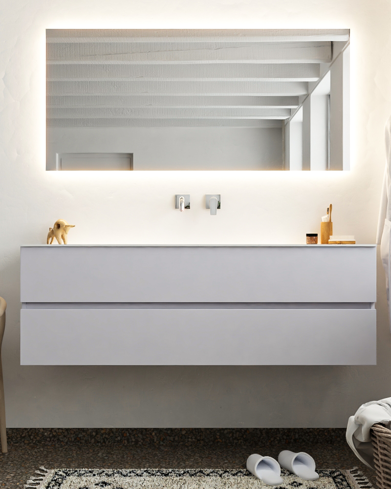 Ya sea que elija color o un aspecto de madera, un mueble de baño a medida, con o sin agujeros para grifos, el conjunto de muebles de baño Vica lo tiene todo. Con la colección de muebles de baño Vica, puede elegir entre 3 modelos de lavabos: CLOUD y MOON en Solid Surface, con opciones de lavabo a la derecha, izquierda, en el medio o doble, y con o sin agujeros para grifos. También está el lavabo de cerámica DENIA con opciones en el medio o doble. Además, se ofrece la posibilidad de personalización.