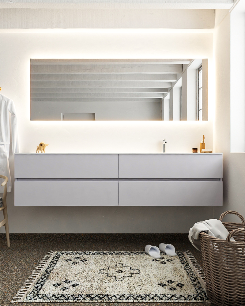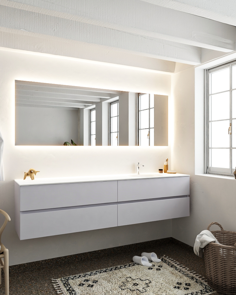 Ya sea que elija color o un aspecto de madera, un mueble de baño a medida, con o sin agujeros para grifos, el conjunto de muebles de baño Vica lo tiene todo. Con la colección de muebles de baño Vica, puede elegir entre 3 modelos de lavabos: CLOUD y MOON en Solid Surface, con opciones de lavabo a la derecha, izquierda, en el medio o doble, y con o sin agujeros para grifos. También está el lavabo de cerámica DENIA con opciones en el medio o doble. Además, se ofrece la posibilidad de personalización.