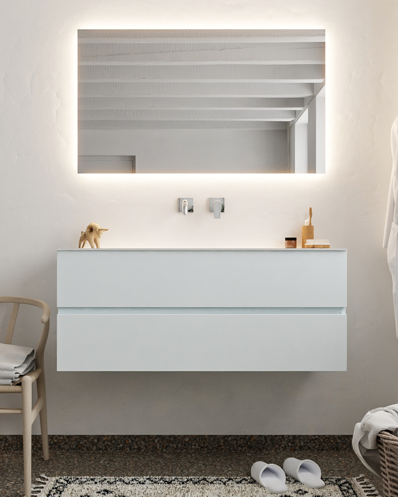 Ya sea que elija color o un aspecto de madera, un mueble de baño a medida, con o sin agujeros para grifos, el conjunto de muebles de baño Vica lo tiene todo. Con la colección de muebles de baño Vica, puede elegir entre 3 modelos de lavabos: CLOUD y MOON en Solid Surface, con opciones de lavabo a la derecha, izquierda, en el medio o doble, y con o sin agujeros para grifos. También está el lavabo de cerámica DENIA con opciones en el medio o doble. Además, se ofrece la posibilidad de personalización.