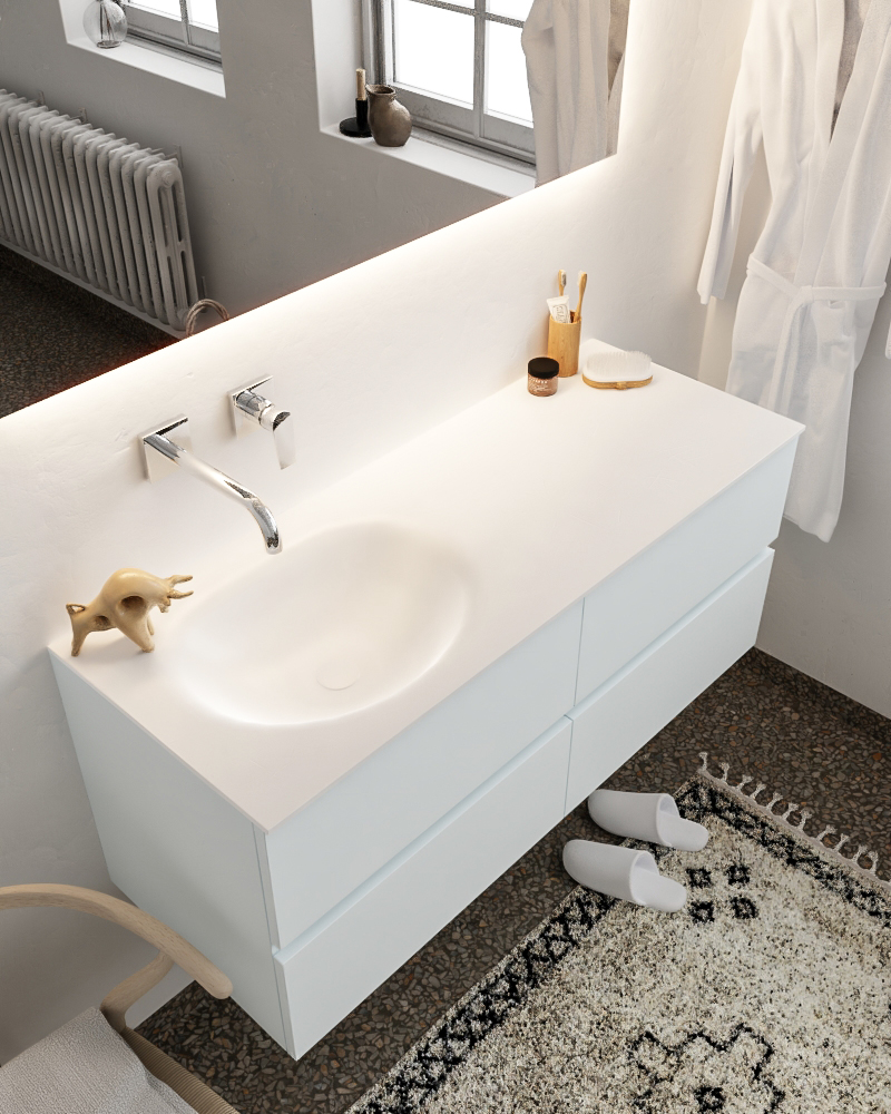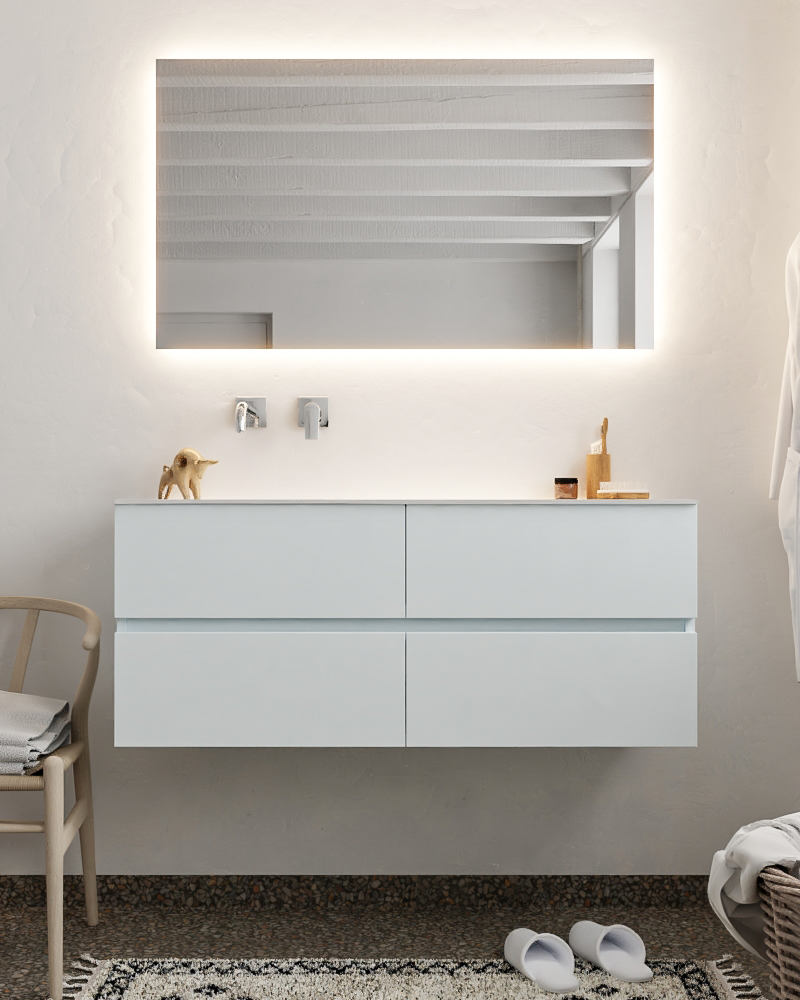 Ya sea que elija color o un aspecto de madera, un mueble de baño a medida, con o sin agujeros para grifos, el conjunto de muebles de baño Vica lo tiene todo. Con la colección de muebles de baño Vica, puede elegir entre 3 modelos de lavabos: CLOUD y MOON en Solid Surface, con opciones de lavabo a la derecha, izquierda, en el medio o doble, y con o sin agujeros para grifos. También está el lavabo de cerámica DENIA con opciones en el medio o doble. Además, se ofrece la posibilidad de personalización.