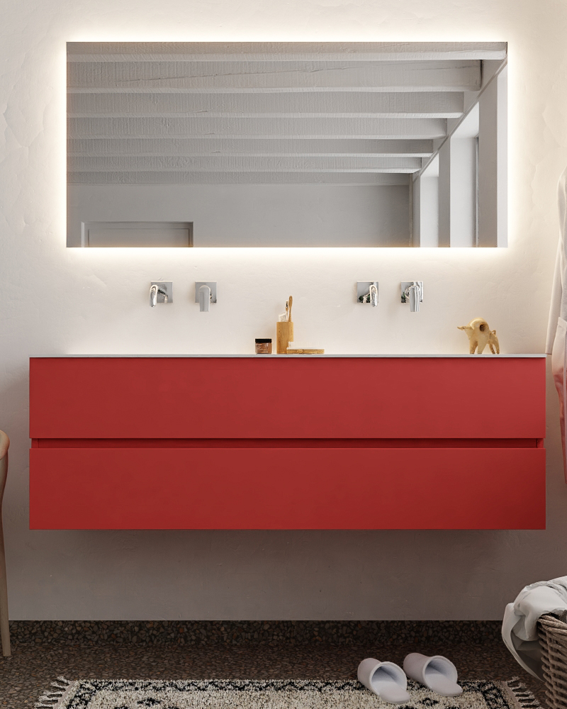 Ya sea que elija color o un aspecto de madera, un mueble de baño a medida, con o sin agujeros para grifos, el conjunto de muebles de baño Vica lo tiene todo. Con la colección de muebles de baño Vica, puede elegir entre 3 modelos de lavabos: CLOUD y MOON en Solid Surface, con opciones de lavabo a la derecha, izquierda, en el medio o doble, y con o sin agujeros para grifos. También está el lavabo de cerámica DENIA con opciones en el medio o doble. Además, se ofrece la posibilidad de personalización.