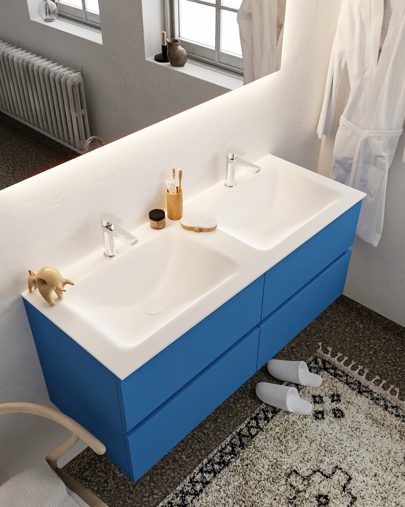 Ya sea que elija color o un aspecto de madera, un mueble de baño a medida, con o sin agujeros para grifos, el conjunto de muebles de baño Vica lo tiene todo. Con la colección de muebles de baño Vica, puede elegir entre 3 modelos de lavabos: CLOUD y MOON en Solid Surface, con opciones de lavabo a la derecha, izquierda, en el medio o doble, y con o sin agujeros para grifos. También está el lavabo de cerámica DENIA con opciones en el medio o doble. Además, se ofrece la posibilidad de personalización.