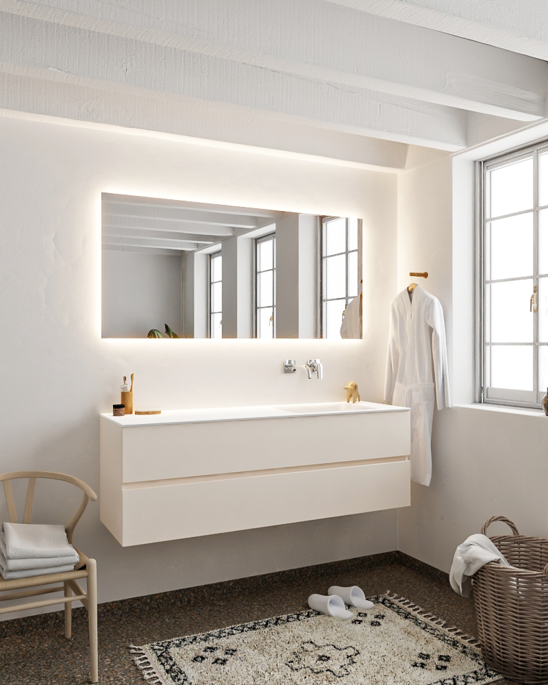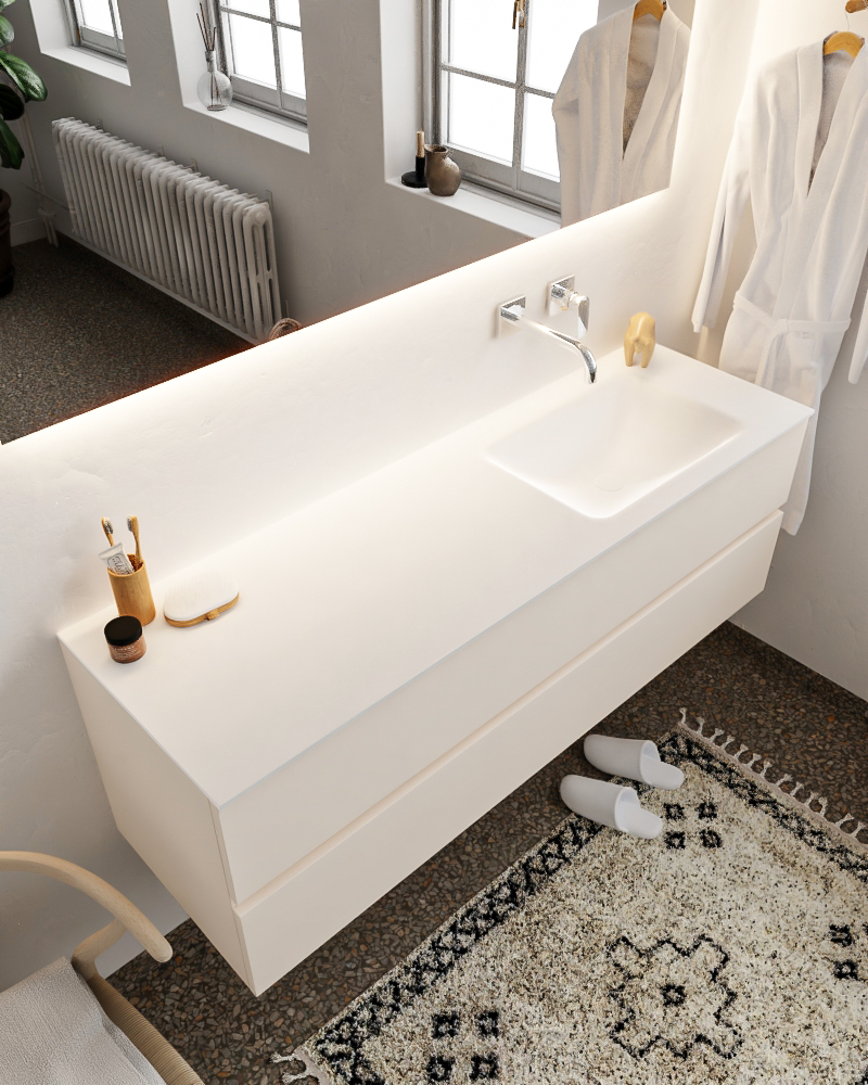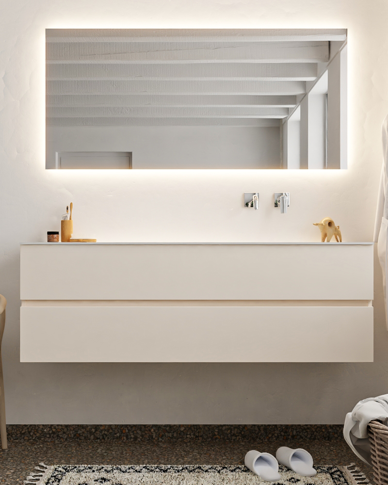 Ya sea que elija color o un aspecto de madera, un mueble de baño a medida, con o sin agujeros para grifos, el conjunto de muebles de baño Vica lo tiene todo. Con la colección de muebles de baño Vica, puede elegir entre 3 modelos de lavabos: CLOUD y MOON en Solid Surface, con opciones de lavabo a la derecha, izquierda, en el medio o doble, y con o sin agujeros para grifos. También está el lavabo de cerámica DENIA con opciones en el medio o doble. Además, se ofrece la posibilidad de personalización.