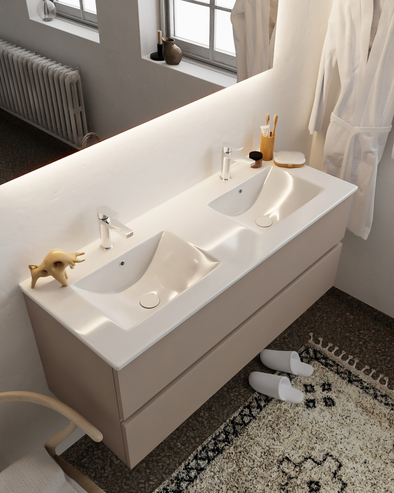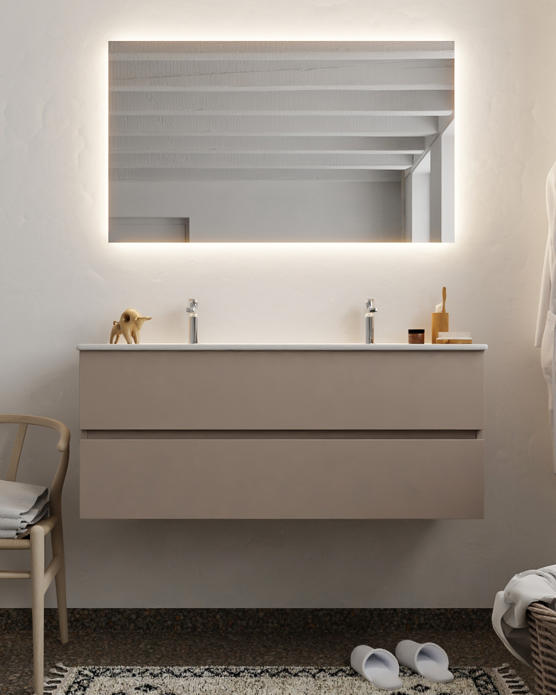 MONDIAZ VICA 120cm mueble de baño Smoke 2 cajones lavabo DENIA Doble 2 orificios.