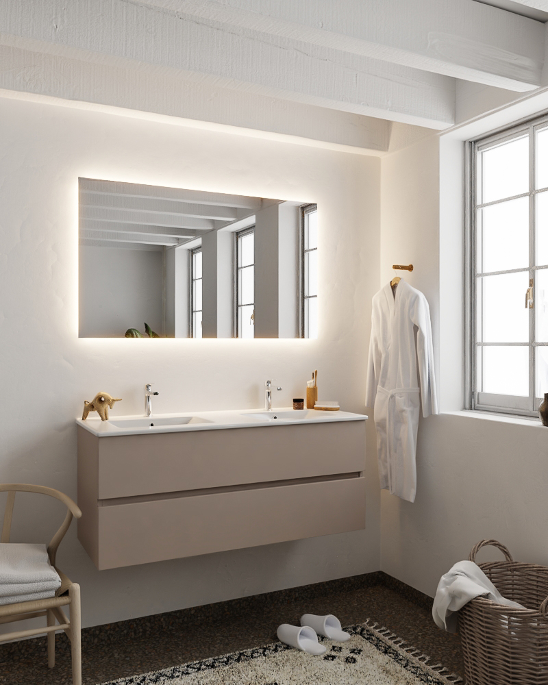 Ya sea que elija color o un aspecto de madera, un mueble de baño a medida, con o sin agujeros para grifos, el conjunto de muebles de baño Vica lo tiene todo. Con la colección de muebles de baño Vica, puede elegir entre 3 modelos de lavabos: CLOUD y MOON en Solid Surface, con opciones de lavabo a la derecha, izquierda, en el medio o doble, y con o sin agujeros para grifos. También está el lavabo de cerámica DENIA con opciones en el medio o doble. Además, se ofrece la posibilidad de personalización.