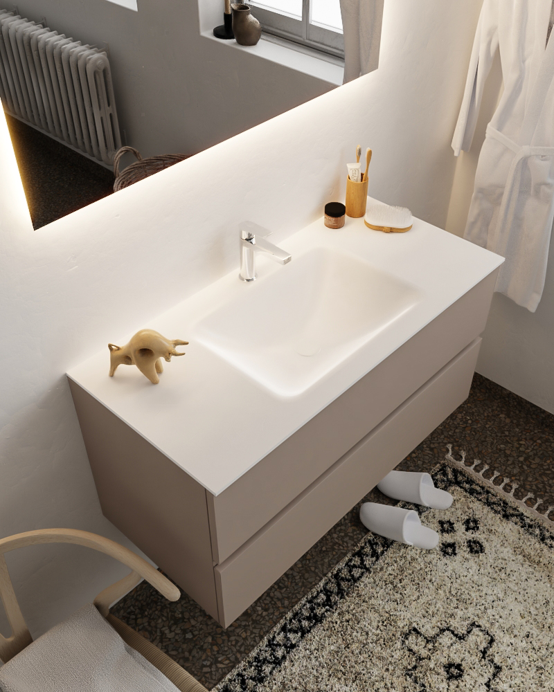 Ya sea que elija color o un aspecto de madera, un mueble de baño a medida, con o sin agujeros para grifos, el conjunto de muebles de baño Vica lo tiene todo. Con la colección de muebles de baño Vica, puede elegir entre 3 modelos de lavabos: CLOUD y MOON en Solid Surface, con opciones de lavabo a la derecha, izquierda, en el medio o doble, y con o sin agujeros para grifos. También está el lavabo de cerámica DENIA con opciones en el medio o doble. Además, se ofrece la posibilidad de personalización.