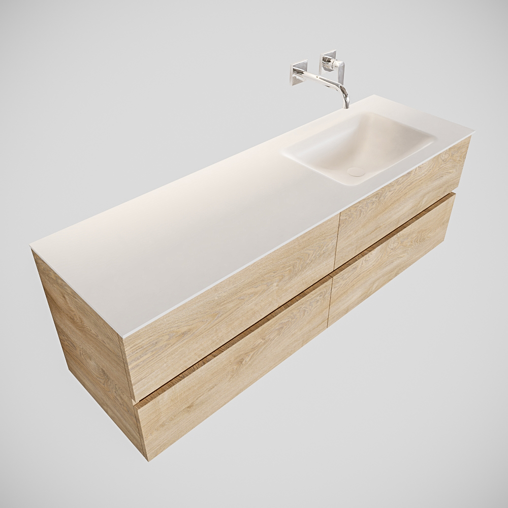 Ya sea que elija color o un aspecto de madera, un mueble de baño a medida, con o sin agujeros para grifos, el conjunto de muebles de baño Vica lo tiene todo. Con la colección de muebles de baño Vica, puede elegir entre 3 modelos de lavabos: CLOUD y MOON en Solid Surface, con opciones de lavabo a la derecha, izquierda, en el medio o doble, y con o sin agujeros para grifos. También está el lavabo de cerámica DENIA con opciones en el medio o doble. Además, se ofrece la posibilidad de personalización.