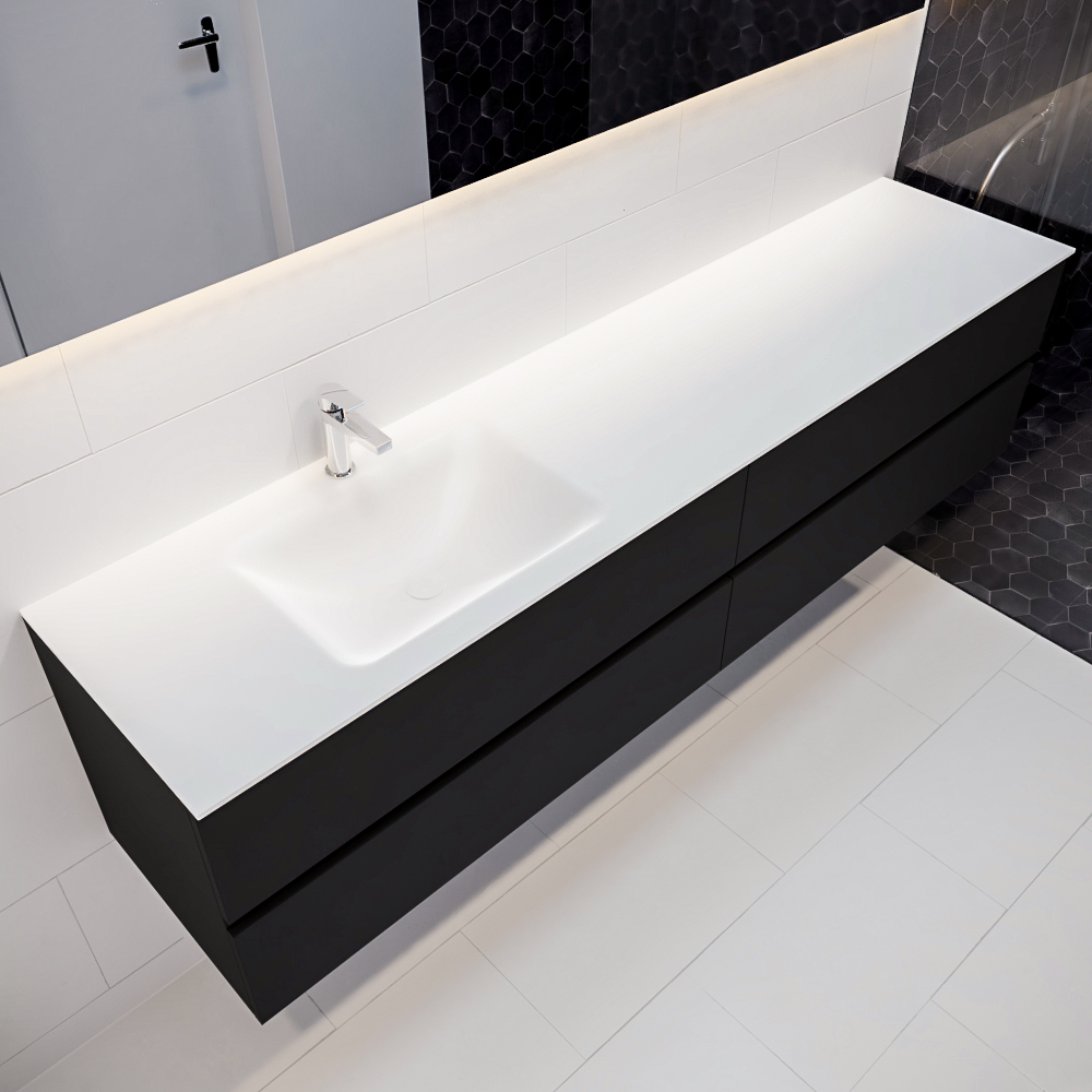 Ya sea que elija color o un aspecto de madera, un mueble de baño a medida, con o sin agujeros para grifos, el conjunto de muebles de baño Vica lo tiene todo. Con la colección de muebles de baño Vica, puede elegir entre 3 modelos de lavabos: CLOUD y MOON en Solid Surface, con opciones de lavabo a la derecha, izquierda, en el medio o doble, y con o sin agujeros para grifos. También está el lavabo de cerámica DENIA con opciones en el medio o doble. Además, se ofrece la posibilidad de personalización.