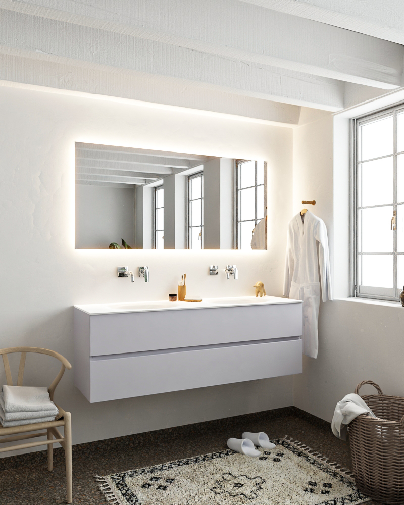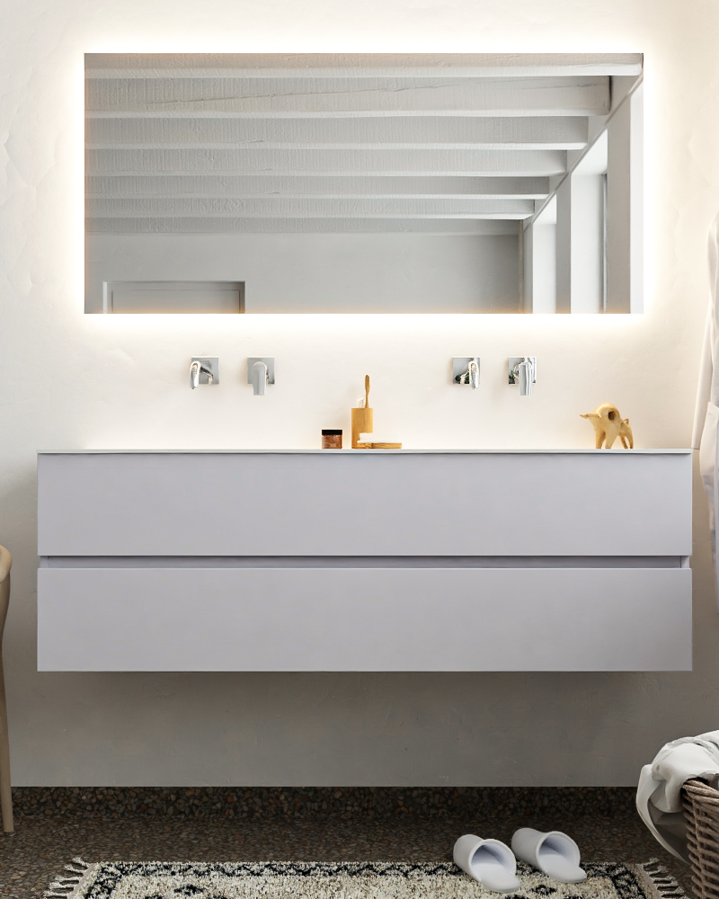 Ya sea que elija color o un aspecto de madera, un mueble de baño a medida, con o sin agujeros para grifos, el conjunto de muebles de baño Vica lo tiene todo. Con la colección de muebles de baño Vica, puede elegir entre 3 modelos de lavabos: CLOUD y MOON en Solid Surface, con opciones de lavabo a la derecha, izquierda, en el medio o doble, y con o sin agujeros para grifos. También está el lavabo de cerámica DENIA con opciones en el medio o doble. Además, se ofrece la posibilidad de personalización.