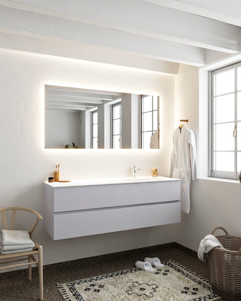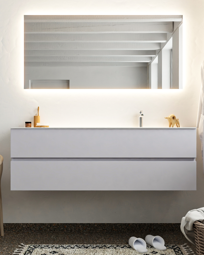 MONDIAZ VICA 150cm mueble de baño Cale 2 cajones lavabo CLOUD Derecho 1 orificio con espejo LED.