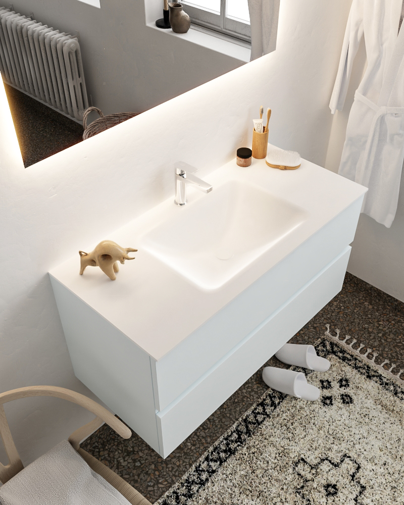 MONDIAZ VICA 100cm mueble de baño Clay 2 cajones lavabo CLOUD Centro 1 orificio con espejo LED.