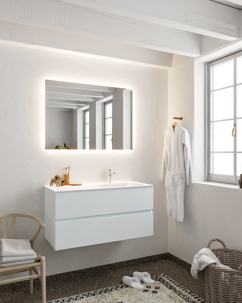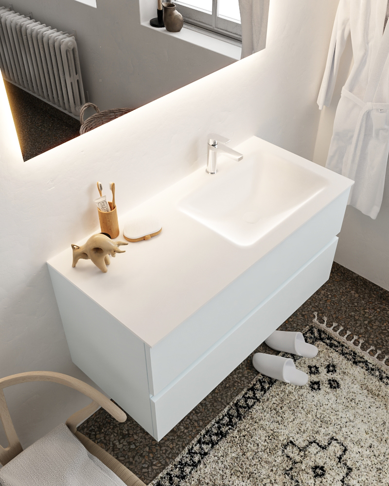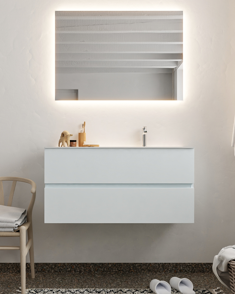 MONDIAZ VICA 100cm mueble de baño Clay 2 cajones lavabo CLOUD Derecho 1 orificio con espejo LED.