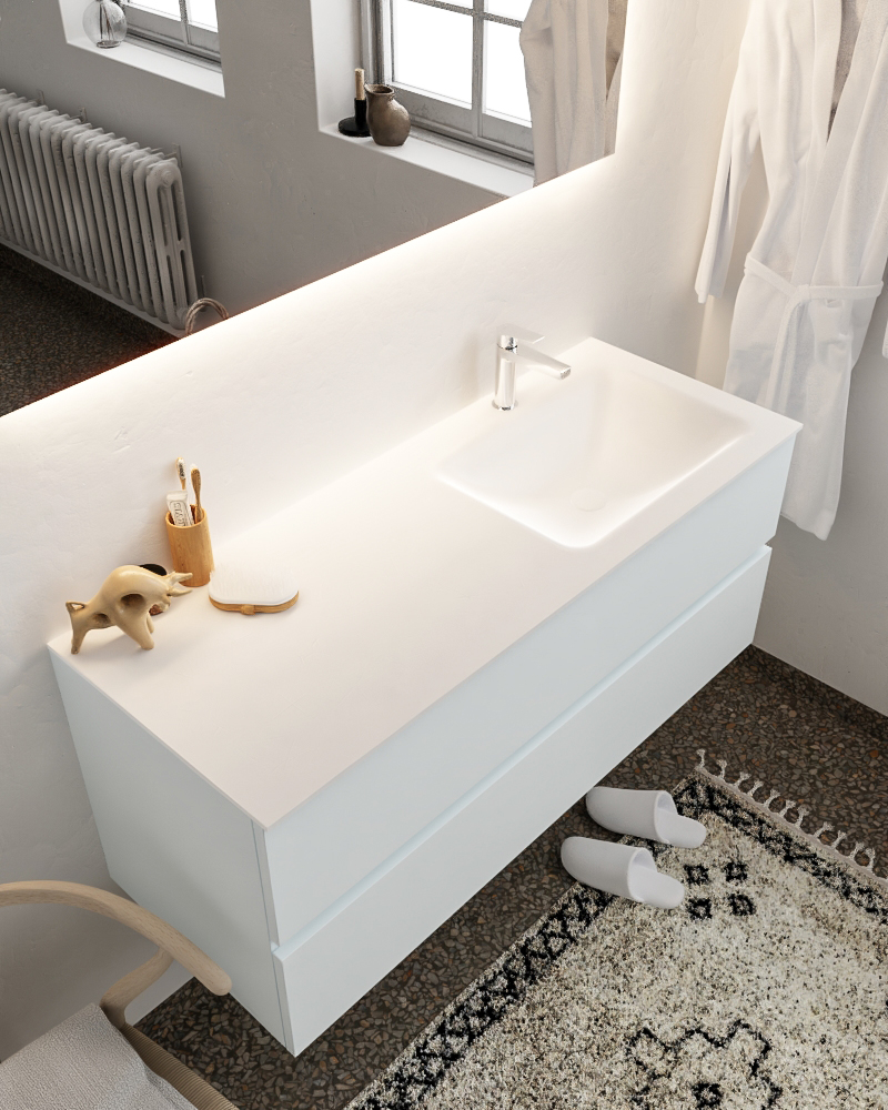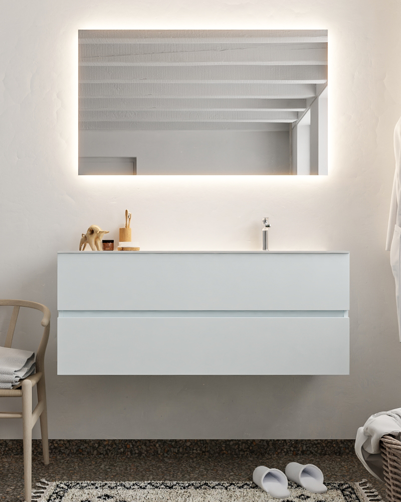 Ya sea que elija color o un aspecto de madera, un mueble de baño a medida, con o sin agujeros para grifos, el conjunto de muebles de baño Vica lo tiene todo. Con la colección de muebles de baño Vica, puede elegir entre 3 modelos de lavabos: CLOUD y MOON en Solid Surface, con opciones de lavabo a la derecha, izquierda, en el medio o doble, y con o sin agujeros para grifos. También está el lavabo de cerámica DENIA con opciones en el medio o doble. Además, se ofrece la posibilidad de personalización.