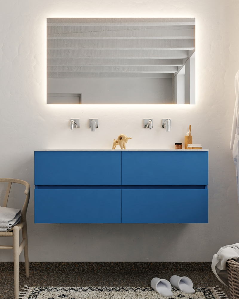 Ya sea que elija color o un aspecto de madera, un mueble de baño a medida, con o sin agujeros para grifos, el conjunto de muebles de baño Vica lo tiene todo. Con la colección de muebles de baño Vica, puede elegir entre 3 modelos de lavabos: CLOUD y MOON en Solid Surface, con opciones de lavabo a la derecha, izquierda, en el medio o doble, y con o sin agujeros para grifos. También está el lavabo de cerámica DENIA con opciones en el medio o doble. Además, se ofrece la posibilidad de personalización.