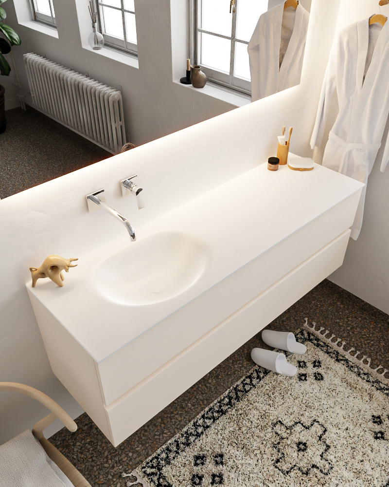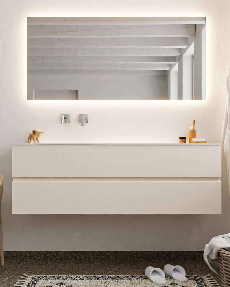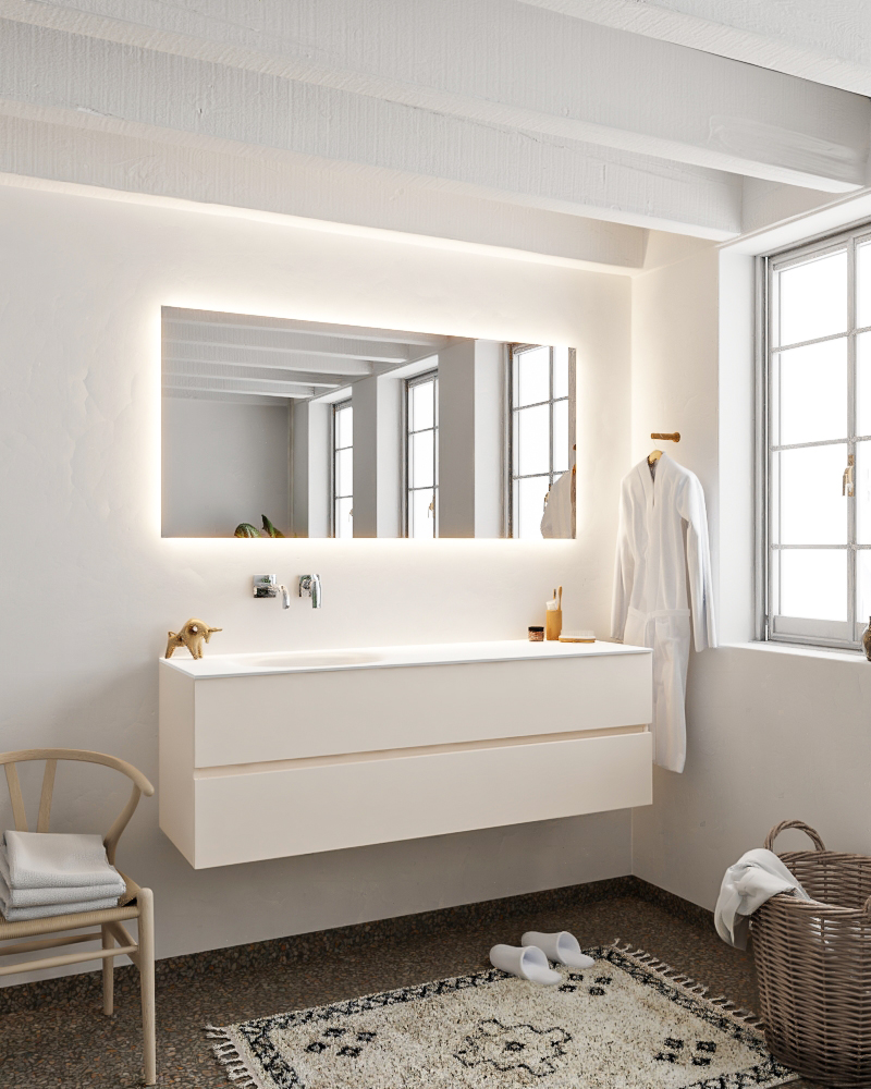 Ya sea que elija color o un aspecto de madera, un mueble de baño a medida, con o sin agujeros para grifos, el conjunto de muebles de baño Vica lo tiene todo. Con la colección de muebles de baño Vica, puede elegir entre 3 modelos de lavabos: CLOUD y MOON en Solid Surface, con opciones de lavabo a la derecha, izquierda, en el medio o doble, y con o sin agujeros para grifos. También está el lavabo de cerámica DENIA con opciones en el medio o doble. Además, se ofrece la posibilidad de personalización.