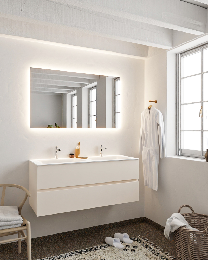 Ya sea que elija color o un aspecto de madera, un mueble de baño a medida, con o sin agujeros para grifos, el conjunto de muebles de baño Vica lo tiene todo. Con la colección de muebles de baño Vica, puede elegir entre 3 modelos de lavabos: CLOUD y MOON en Solid Surface, con opciones de lavabo a la derecha, izquierda, en el medio o doble, y con o sin agujeros para grifos. También está el lavabo de cerámica DENIA con opciones en el medio o doble. Además, se ofrece la posibilidad de personalización.