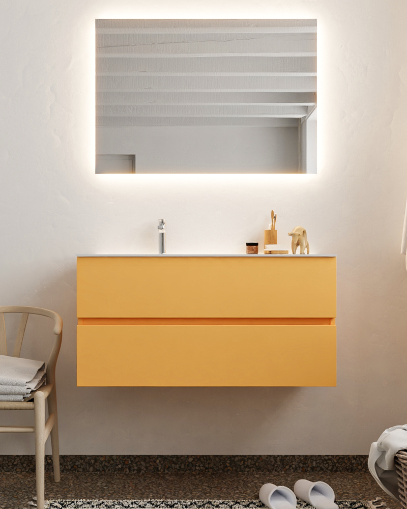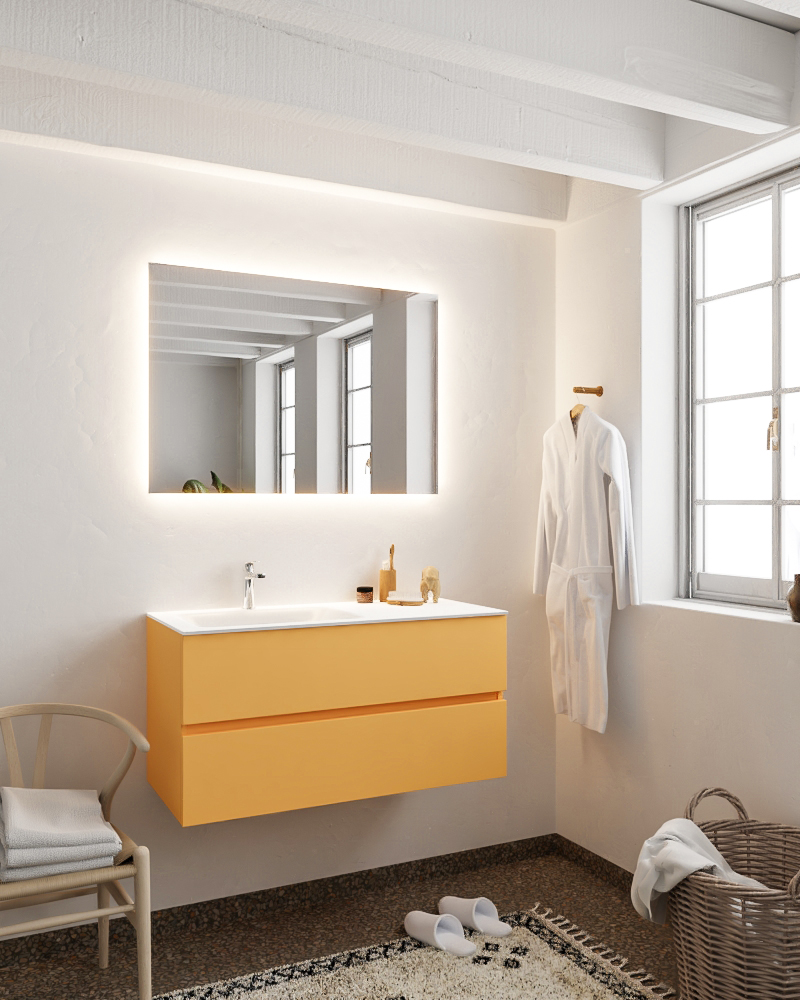 MONDIAZ VICA 100cm mueble de baño Ocher 2 cajones lavabo CLOUD Izquierda 1 orificio con espejo LED.