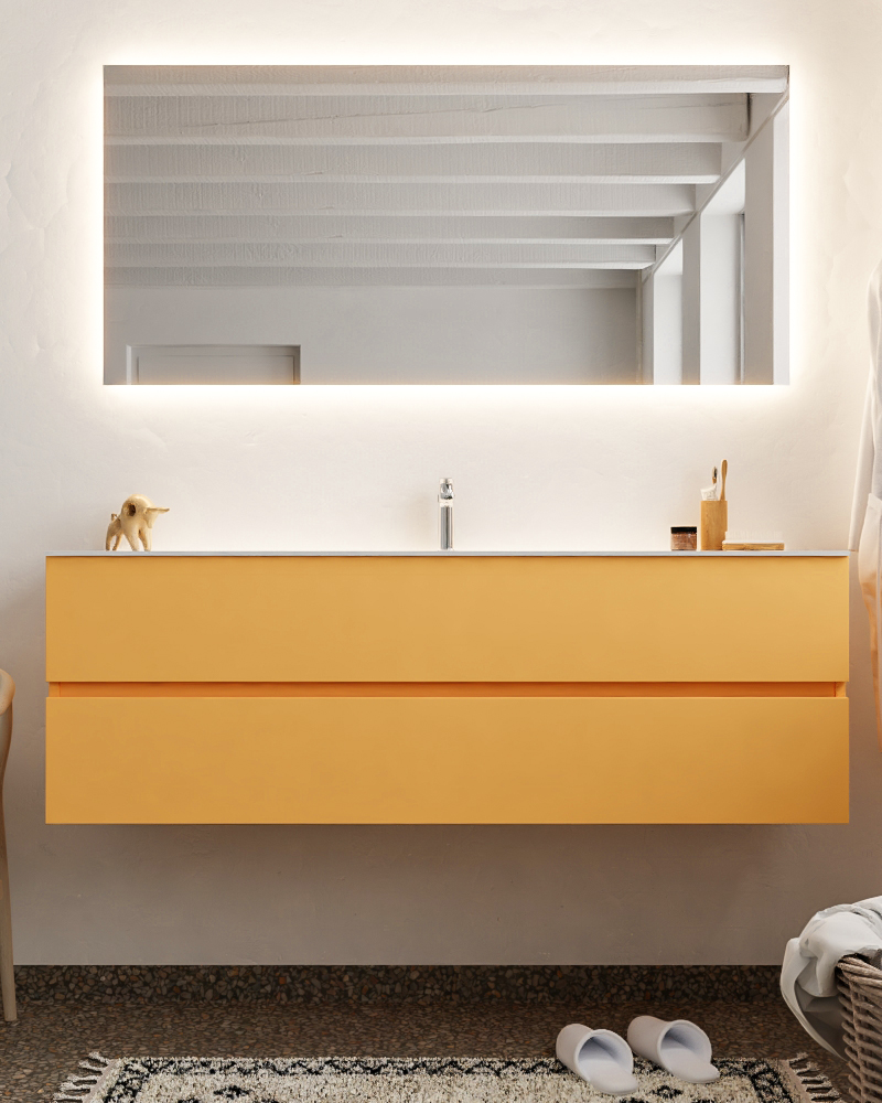 MONDIAZ VICA 150cm mueble de baño Ocher 2 cajones lavabo CLOUD Centro 1 orificio con espejo LED.