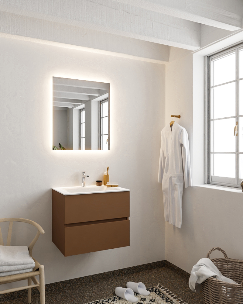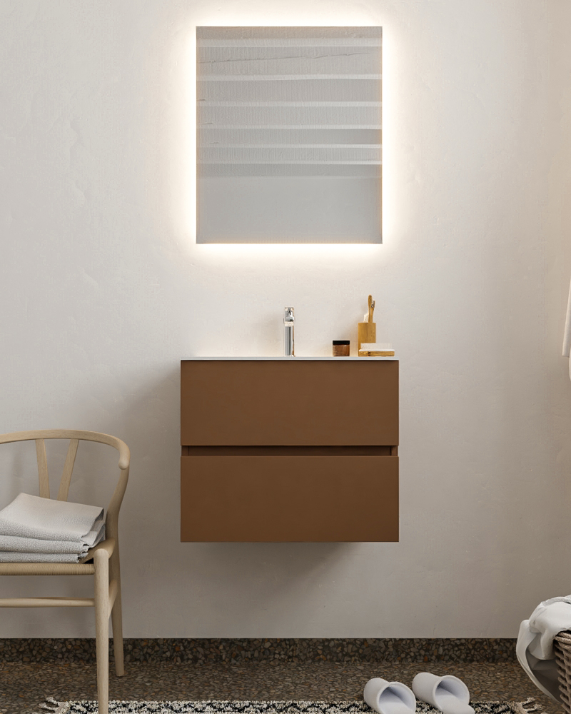 MONDIAZ VICA 60cm mueble de baño Rust 2 cajones lavabo CLOUD Centro 1 orificio con espejo LED.