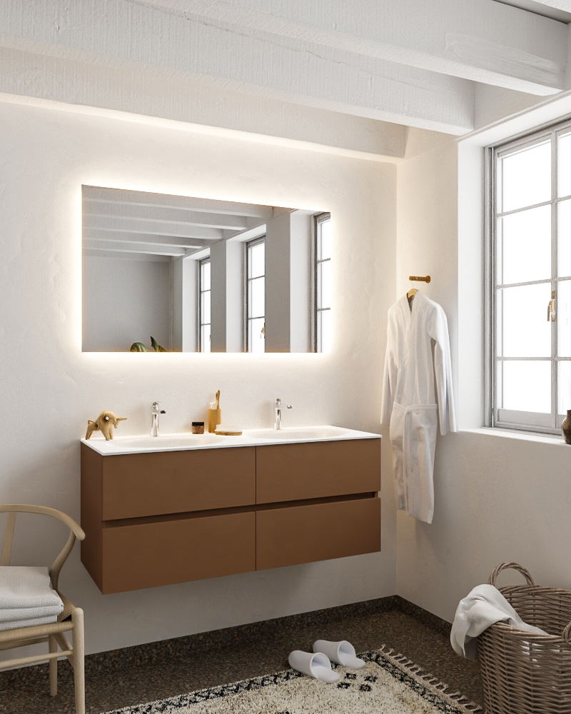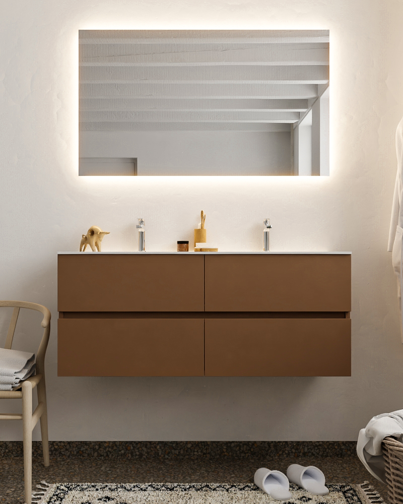 Ya sea que elija color o un aspecto de madera, un mueble de baño a medida, con o sin agujeros para grifos, el conjunto de muebles de baño Vica lo tiene todo. Con la colección de muebles de baño Vica, puede elegir entre 3 modelos de lavabos: CLOUD y MOON en Solid Surface, con opciones de lavabo a la derecha, izquierda, en el medio o doble, y con o sin agujeros para grifos. También está el lavabo de cerámica DENIA con opciones en el medio o doble. Además, se ofrece la posibilidad de personalización.