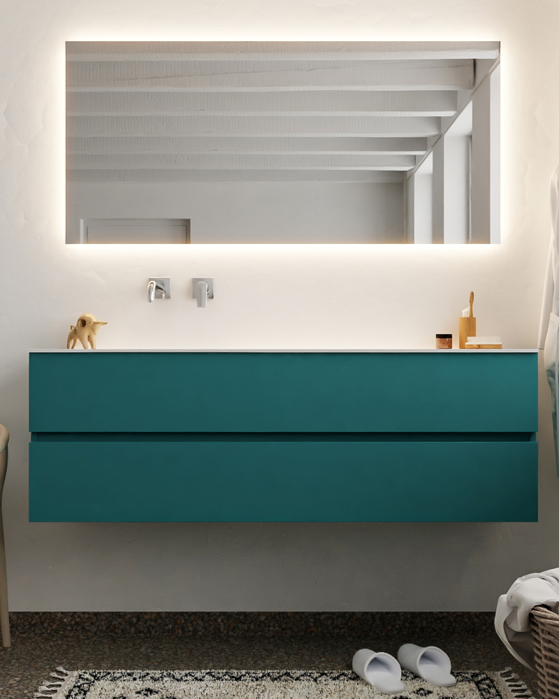 Ya sea que elija color o un aspecto de madera, un mueble de baño a medida, con o sin agujeros para grifos, el conjunto de muebles de baño Vica lo tiene todo. Con la colección de muebles de baño Vica, puede elegir entre 3 modelos de lavabos: CLOUD y MOON en Solid Surface, con opciones de lavabo a la derecha, izquierda, en el medio o doble, y con o sin agujeros para grifos. También está el lavabo de cerámica DENIA con opciones en el medio o doble. Además, se ofrece la posibilidad de personalización.