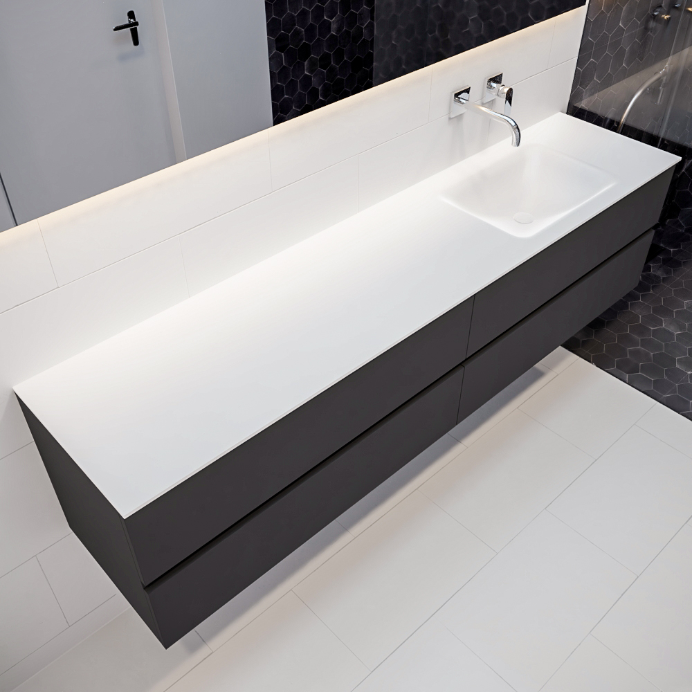 Ya sea que elija color o un aspecto de madera, un mueble de baño a medida, con o sin agujeros para grifos, el conjunto de muebles de baño Vica lo tiene todo. Con la colección de muebles de baño Vica, puede elegir entre 3 modelos de lavabos: CLOUD y MOON en Solid Surface, con opciones de lavabo a la derecha, izquierda, en el medio o doble, y con o sin agujeros para grifos. También está el lavabo de cerámica DENIA con opciones en el medio o doble. Además, se ofrece la posibilidad de personalización.
