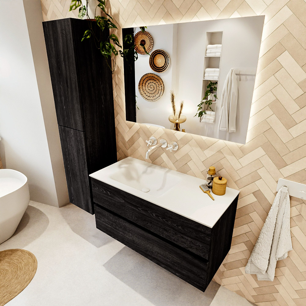 Ya sea que elija un color o un acabado de madera, un mueble de baño a medida, con o sin agujeros para grifos, el conjunto de muebles de baño Vica lo tiene todo. Con la serie Vica, puede elegir entre 3 modelos de lavabos: CLOUD y MOON en Solid Surface, con opciones de lavabo a la derecha, izquierda, en el medio o doble, y con o sin agujeros para grifos. También está el lavabo de cerámica DENIA con opciones en el medio y doble. El conjunto de muebles de baño Vica está disponible en una amplia gama de tamaños estándar, desde 60 cm hasta 200 cm, que aumentan en incrementos de 10 cm. El mueble de baño Vica está disponible en hasta 25 colores, incluyendo nuestros colores especiales Oro y Plata. Si no encuentra el tamaño o color ideal, siempre es posible hacer un pedido a medida. También puede coordinar su baño completo con columnas, bañeras, nichos y accesorios, todos en el mismo color. Con el conjunto de muebles de baño Vica, tendrá un mueble fantástico que completa su baño.