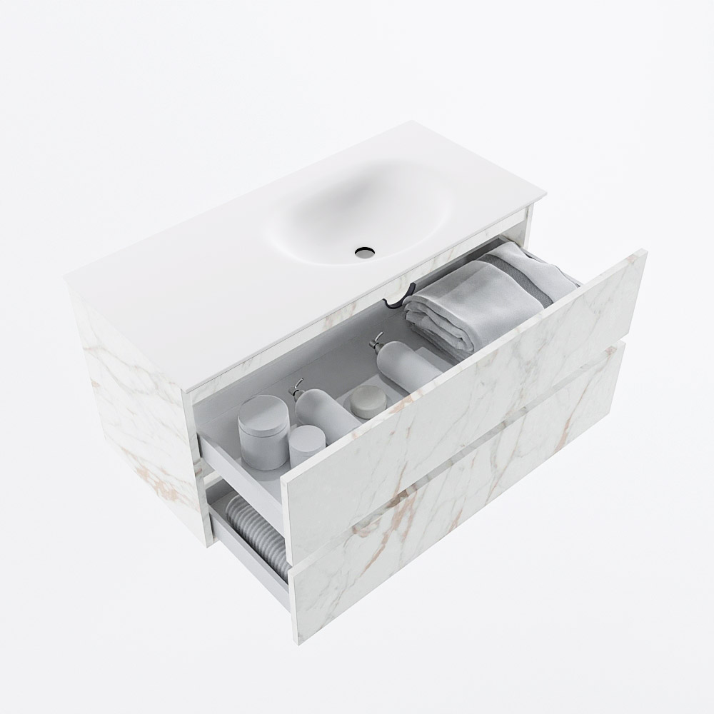 MONDIAZ VICA 100cm mueble de baño Carrara 2 cajones. Lavabo MOON Derecho 1 orificio, color Talc.