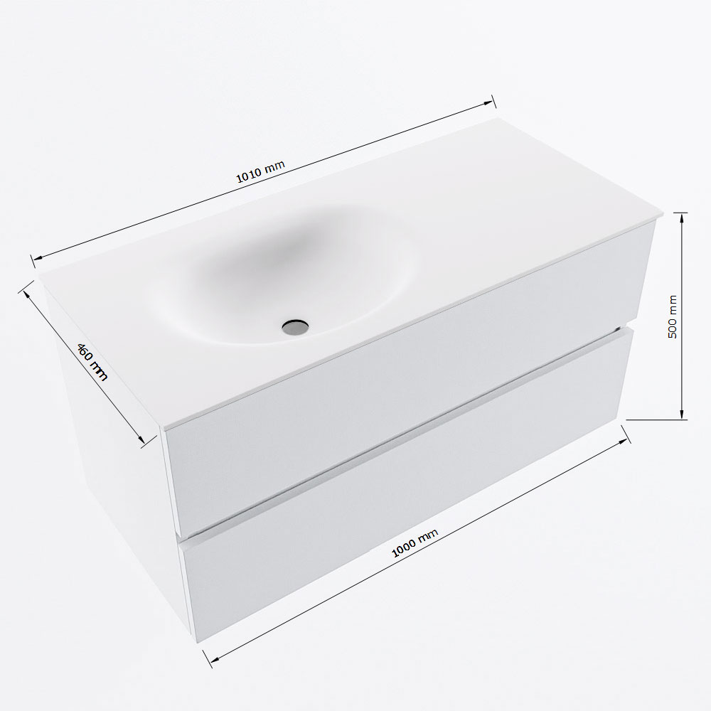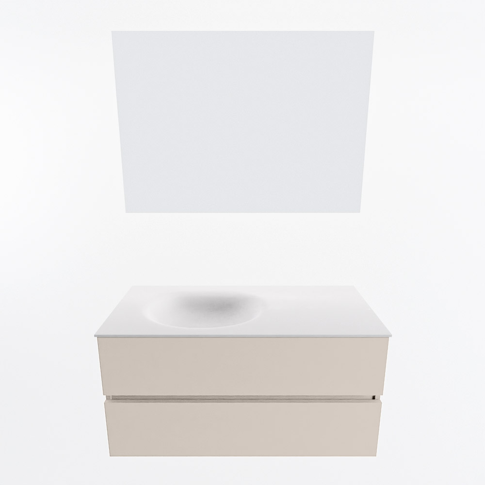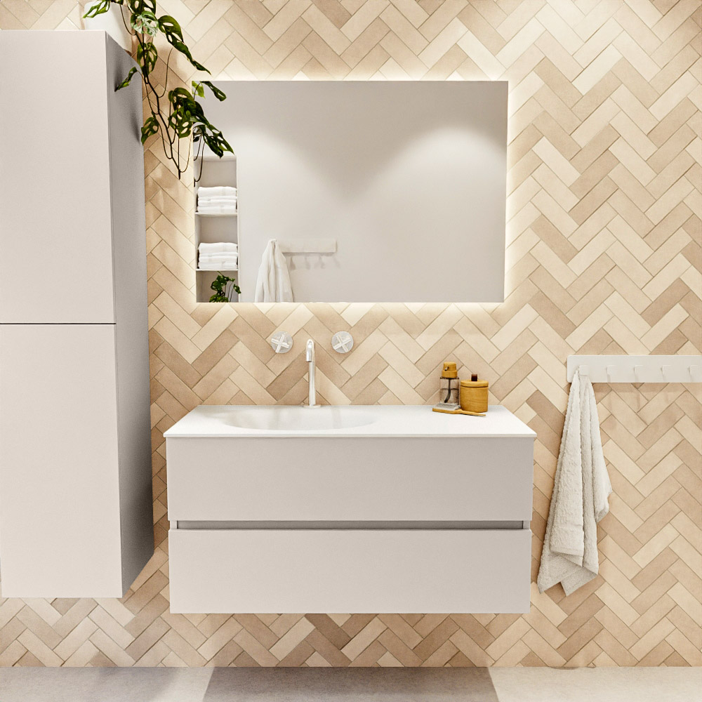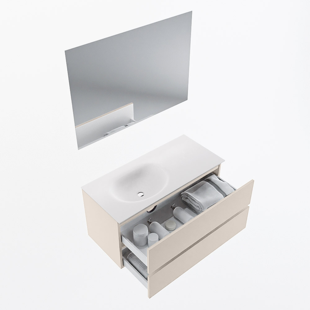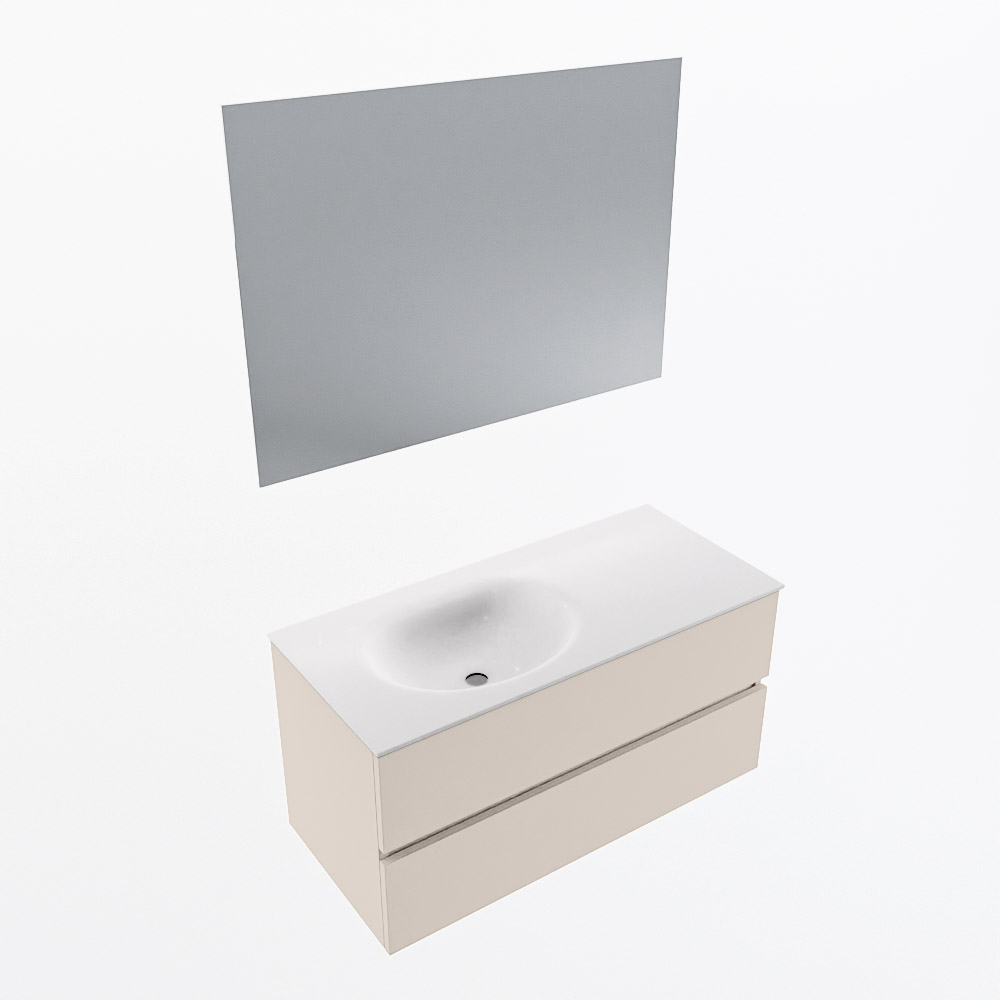 MONDIAZ VICA 100cm mueble de baño Linen 2 cajones. Lavabo MOON Izquierda 1 orificio color Talc con espejo LED.