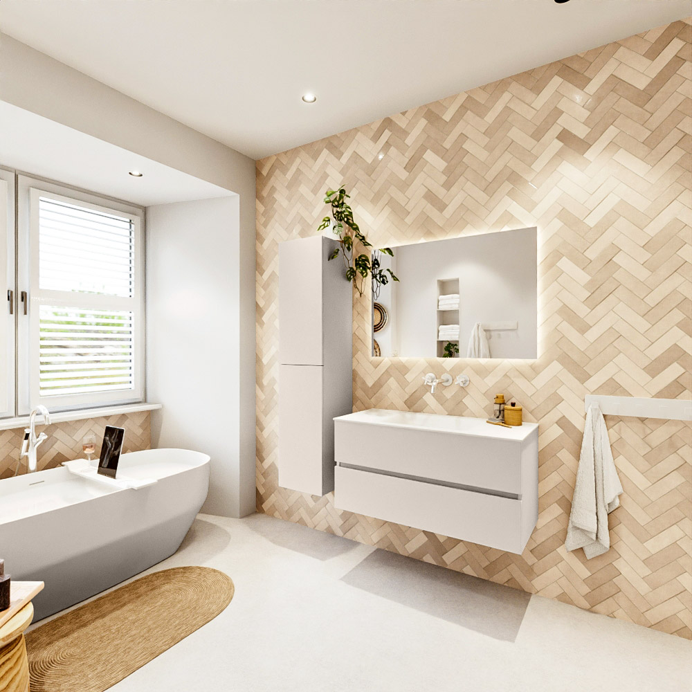 Ya sea que elija un color o un acabado de madera, un mueble de baño a medida, con o sin agujeros para grifos, el conjunto de muebles de baño Vica lo tiene todo. Con la serie Vica, puede elegir entre 3 modelos de lavabos: CLOUD y MOON en Solid Surface, con opciones de lavabo a la derecha, izquierda, en el medio o doble, y con o sin agujeros para grifos. También está el lavabo de cerámica DENIA con opciones en el medio y doble. El conjunto de muebles de baño Vica está disponible en una amplia gama de tamaños estándar, desde 60 cm hasta 200 cm, que aumentan en incrementos de 10 cm. El mueble de baño Vica está disponible en hasta 25 colores, incluyendo nuestros colores especiales Oro y Plata. Si no encuentra el tamaño o color ideal, siempre es posible hacer un pedido a medida. También puede coordinar su baño completo con columnas, bañeras, nichos y accesorios, todos en el mismo color. Con el conjunto de muebles de baño Vica, tendrá un mueble fantástico que completa su baño.