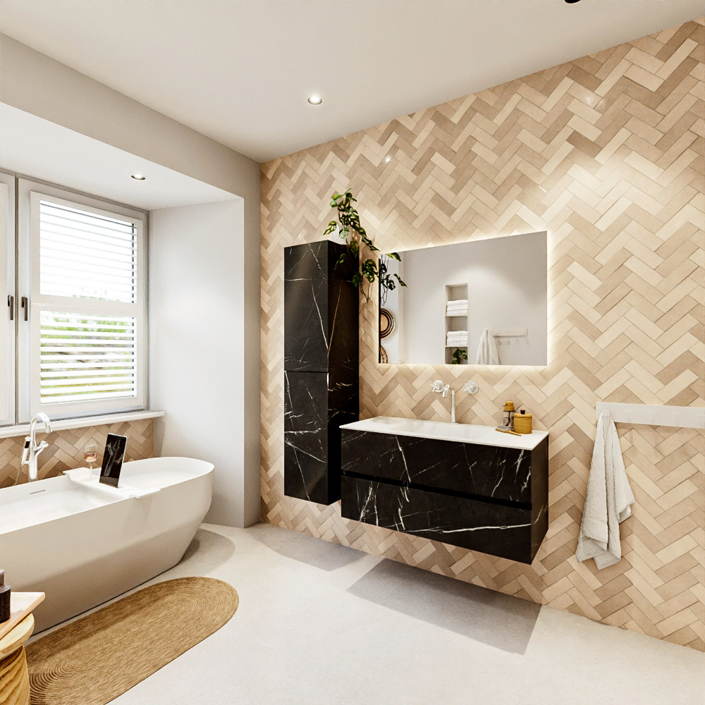 En español: Ya sea que elija un color o un acabado de madera, un mueble de baño a medida, con o sin agujeros para grifos, el conjunto de muebles de baño Vica lo tiene todo. Con la serie Vica, puede elegir entre 3 modelos de lavabos: CLOUD y MOON en Solid Surface, con opciones de lavabo a la derecha, izquierda, en el medio o doble, y con o sin agujeros para grifos. También está el lavabo de cerámica DENIA con opciones en el medio y doble. El conjunto de muebles de baño Vica está disponible en una amplia gama de tamaños estándar, desde 60 cm hasta 200 cm, que aumentan en incrementos de 10 cm. El mueble de baño Vica está disponible en hasta 25 colores, incluyendo nuestros colores especiales Oro y Plata. Si no encuentra el tamaño o color ideal, siempre es posible hacer un pedido a medida. También puede coordinar su baño completo con columnas, bañeras, nichos y accesorios, todos en el mismo color. Con el conjunto de muebles de baño Vica, tendrá un mueble fantástico que completa su baño.