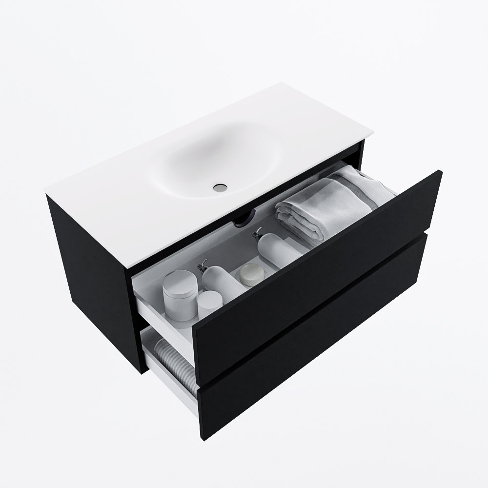 MONDIAZ VICA 100cm mueble de baño Urban 2 cajones. Lavabo MOON Centro sin orificio, color Talc.