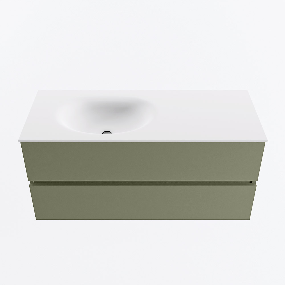 MONDIAZ RIVA 120cm mueble de baño / estante color Linen con 1 cajón. Lavabo DULCET Izquierda sin orificio, color Smoke.