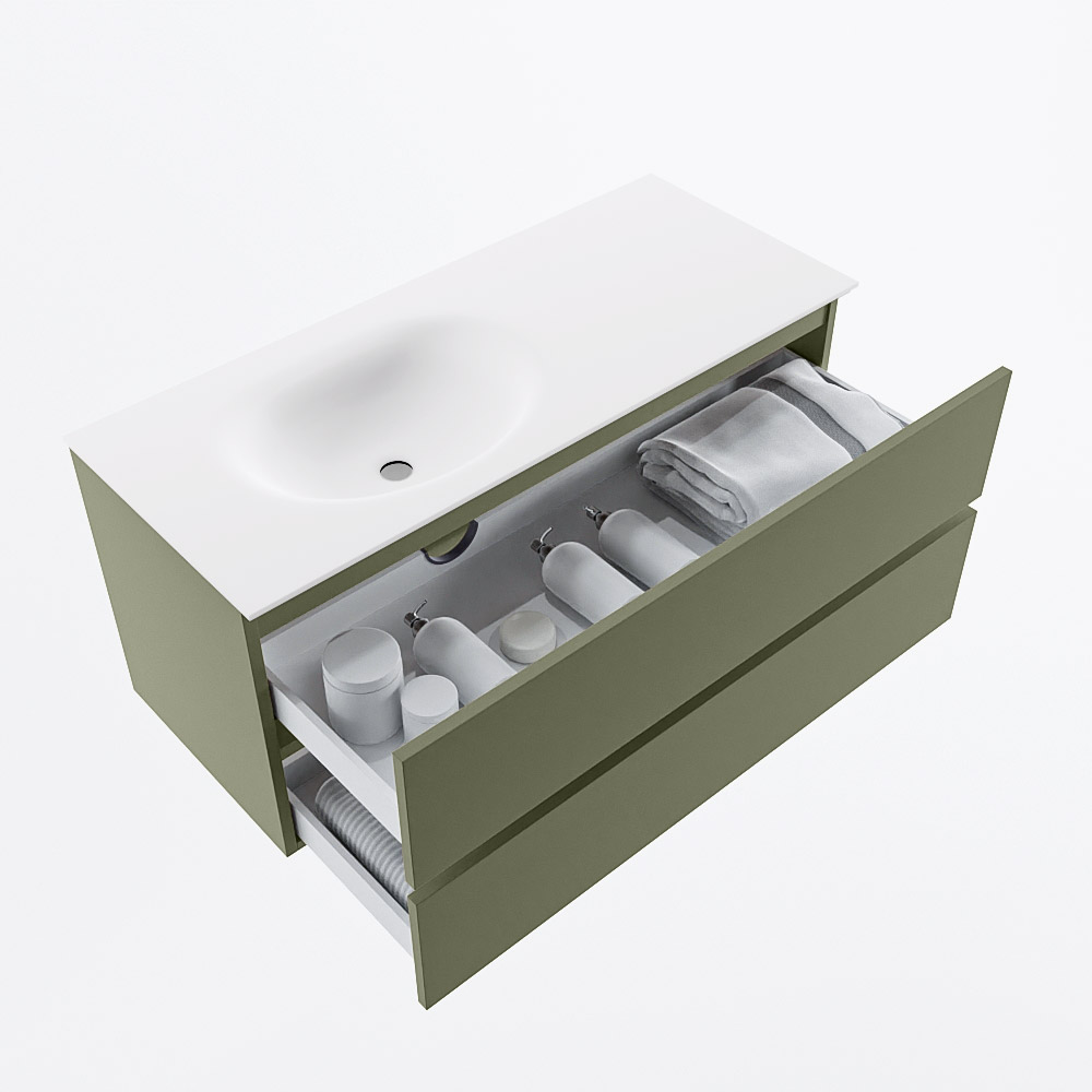 MONDIAZ ALAN-DLUX 120cm mueble de baño Clay 2 cajones. Lavabo CLOUD Centro sin orificios color Opalo.