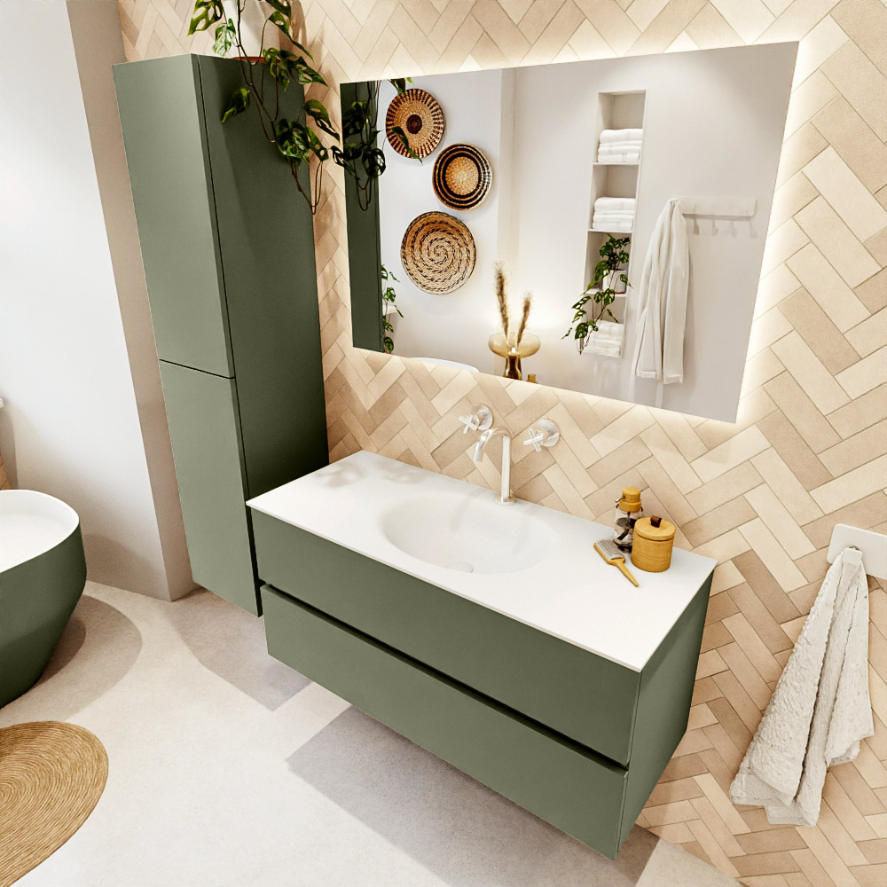 Ya sea que elija un color o un acabado de madera, un mueble de baño a medida, con o sin agujeros para grifos, el conjunto de muebles de baño Vica lo tiene todo. Con la serie Vica, puede elegir entre 3 modelos de lavabos: CLOUD y MOON en Solid Surface, con opciones de lavabo a la derecha, izquierda, en el medio o doble, y con o sin agujeros para grifos. También está el lavabo de cerámica DENIA con opciones en el medio y doble. El conjunto de muebles de baño Vica está disponible en una amplia gama de tamaños estándar, desde 60 cm hasta 200 cm, que aumentan en incrementos de 10 cm. El mueble de baño Vica está disponible en hasta 25 colores, incluyendo nuestros colores especiales Oro y Plata. Si no encuentra el tamaño o color ideal, siempre es posible hacer un pedido a medida. También puede coordinar su baño completo con columnas, bañeras, nichos y accesorios, todos en el mismo color. Con el conjunto de muebles de baño Vica, tendrá un mueble fantástico que completa su baño.