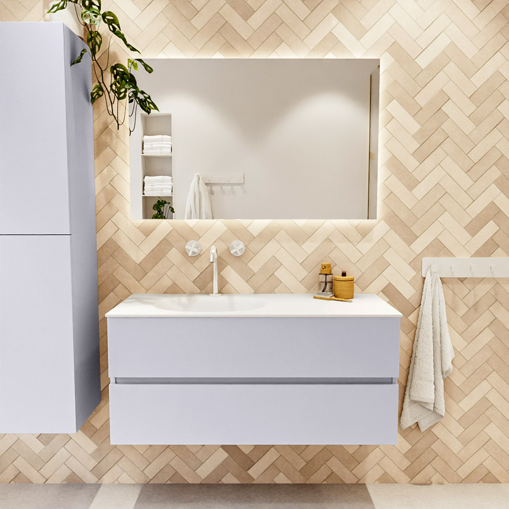 MONDIAZ RIVA 100cm mueble de baño / estante color Light Brown Grey con 1 cajón. Lavabo DULCET Izquierda 1 orificio, color Talc.