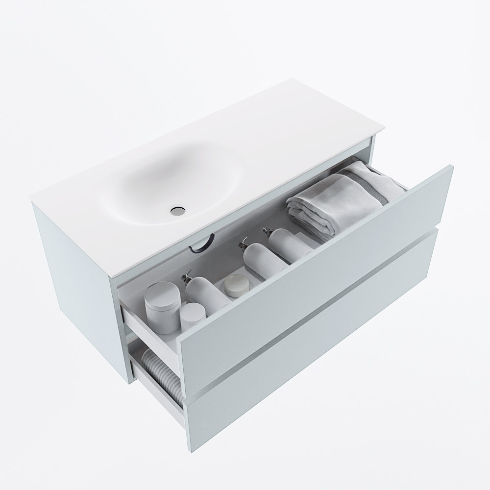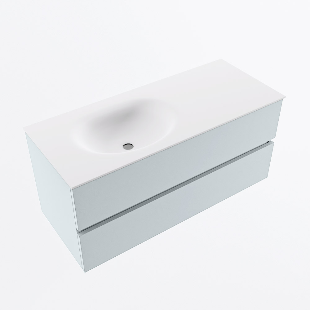 MONDIAZ VICA 140cm mueble de baño Greey 2 cajones. Lavabo MOON Izquierda 1 orificio, color Talc.