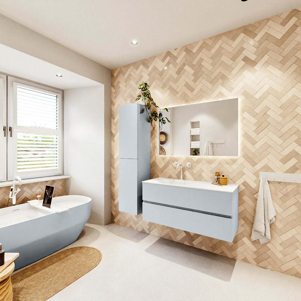 Ya sea que elija un color o un acabado de madera, un mueble de baño a medida, con o sin agujeros para grifos, el conjunto de muebles de baño Vica lo tiene todo. Con la serie Vica, puede elegir entre 3 modelos de lavabos: CLOUD y MOON en Solid Surface, con opciones de lavabo a la derecha, izquierda, en el medio o doble, y con o sin agujeros para grifos. También está el lavabo de cerámica DENIA con opciones en el medio y doble. El conjunto de muebles de baño Vica está disponible en una amplia gama de tamaños estándar, desde 60 cm hasta 200 cm, que aumentan en incrementos de 10 cm. El mueble de baño Vica está disponible en hasta 25 colores, incluyendo nuestros colores especiales Oro y Plata. Si no encuentra el tamaño o color ideal, siempre es posible hacer un pedido a medida. También puede coordinar su baño completo con columnas, bañeras, nichos y accesorios, todos en el mismo color. Con el conjunto de muebles de baño Vica, tendrá un mueble fantástico que completa su baño.