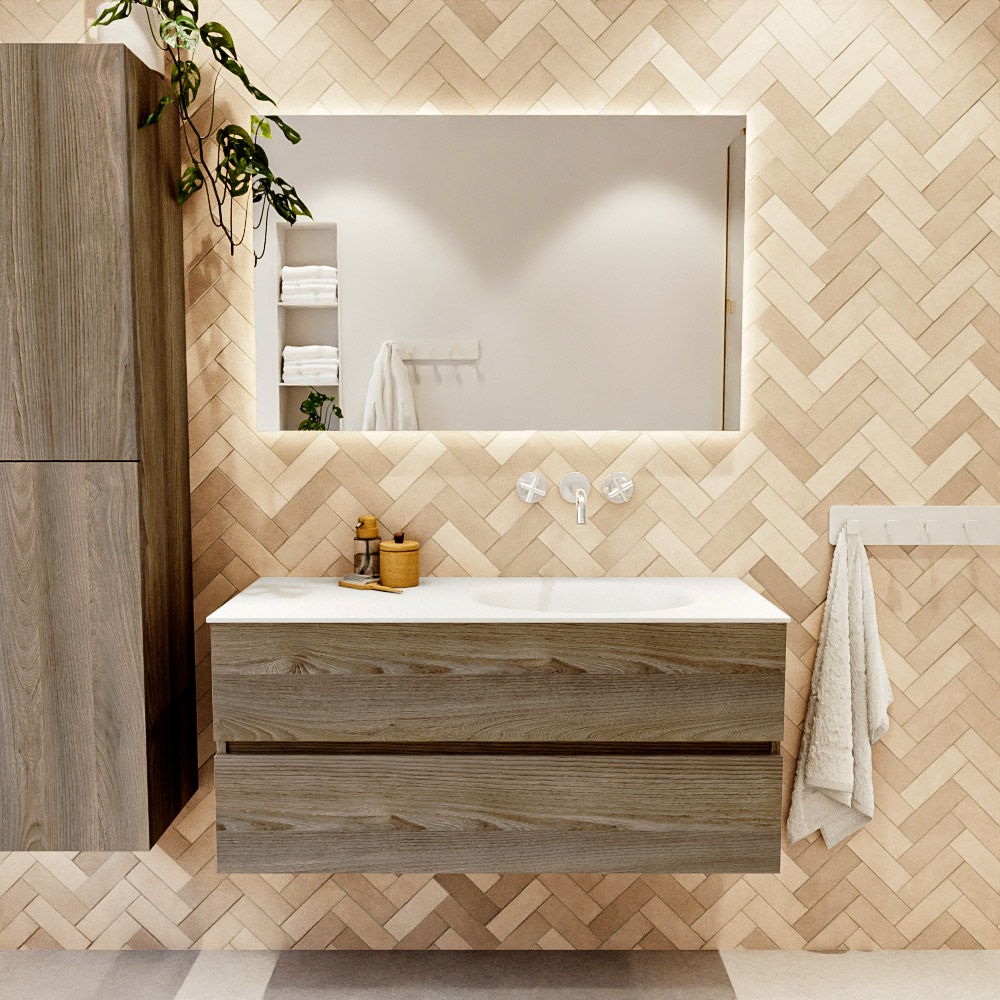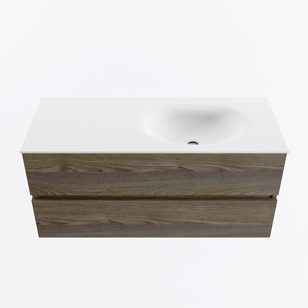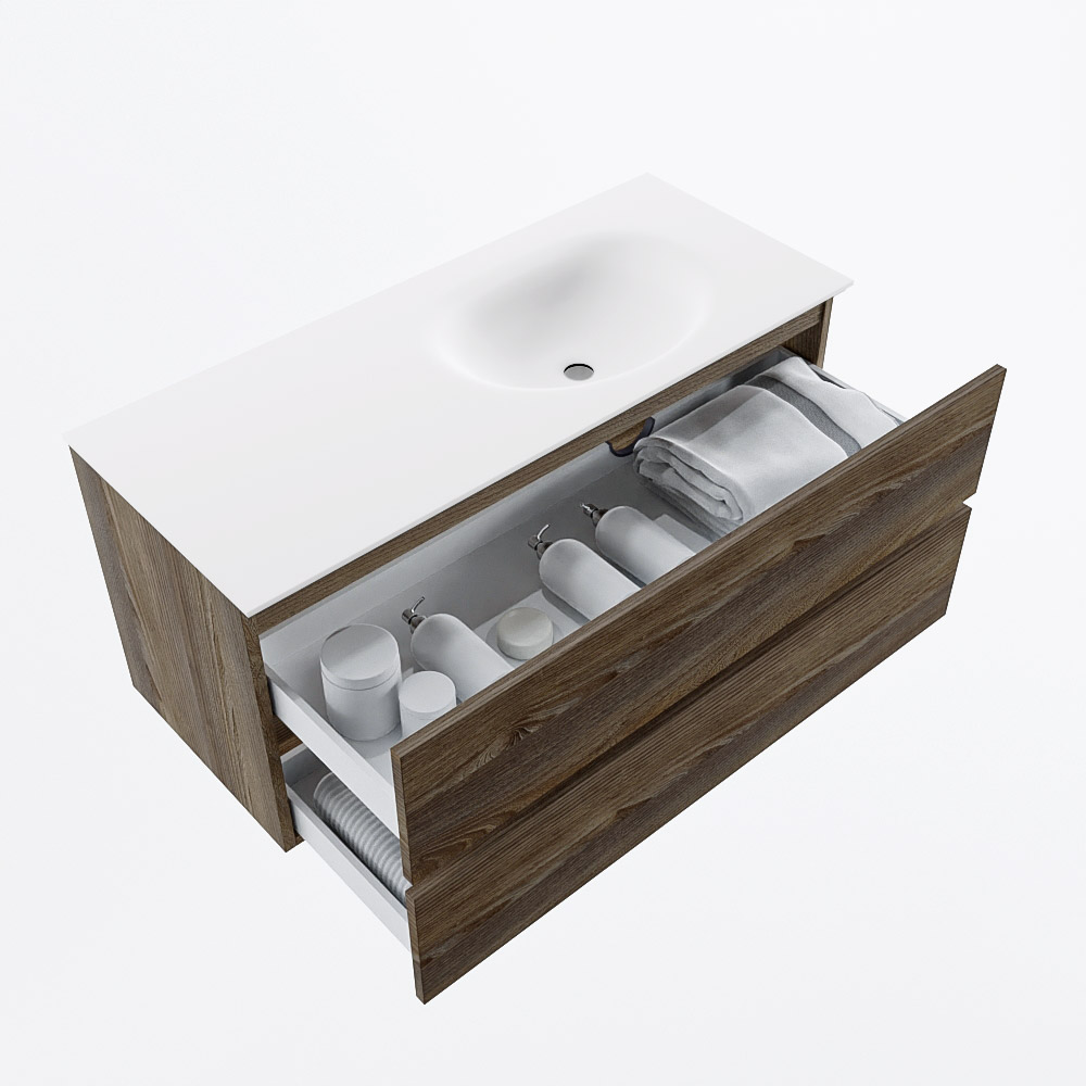 MONDIAZ VICA 110cm mueble de baño Dark Brown Grey 2 cajones. Lavabo MOON Derecho sin orificio, color Talc.