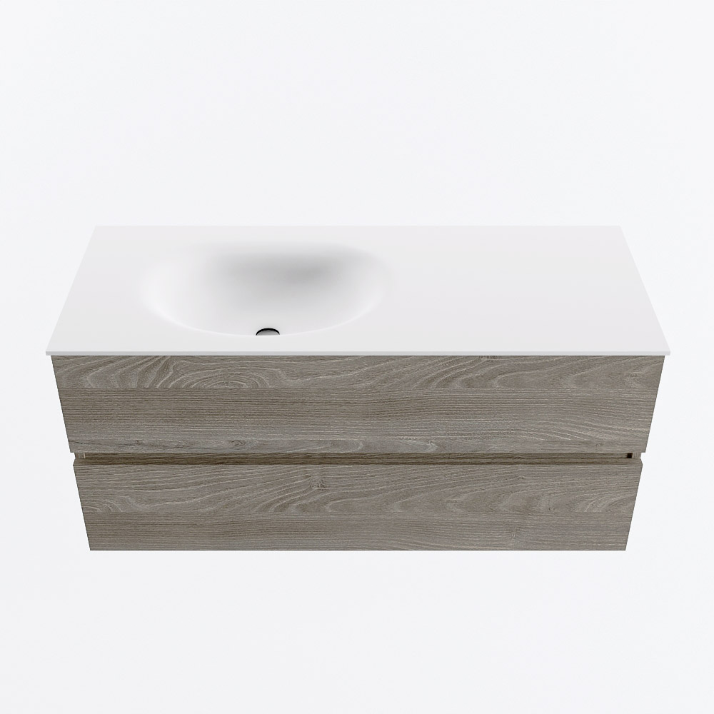 MONDIAZ KURVE-DLUX 125cm mueble de baño curva Derecha color Oak con 1 cajón y 1 puerta. Lavabo BIG MEDIUM Izquierda 1 orificio Lava.