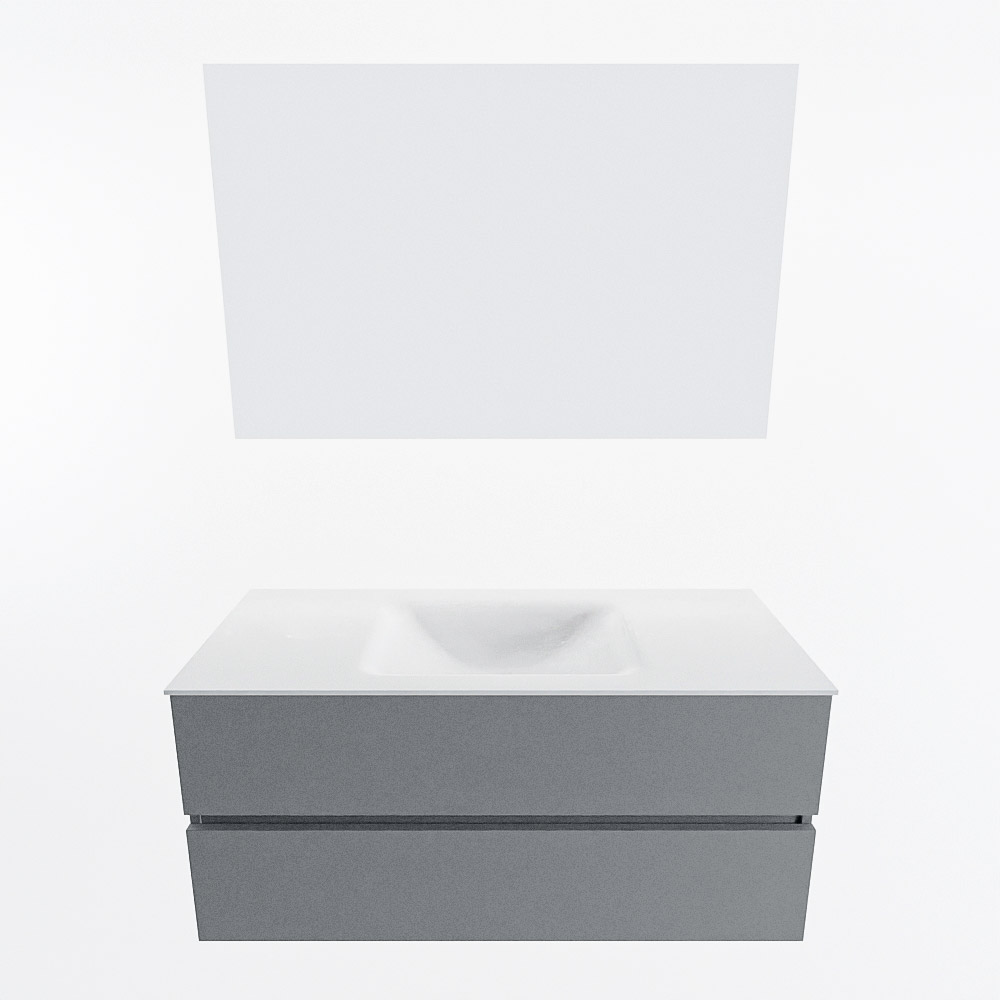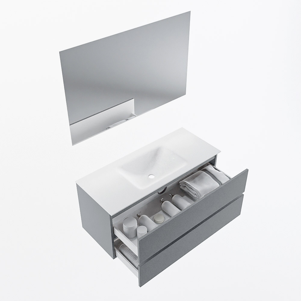 MONDIAZ VICA 110cm mueble de baño Plata 2 cajones. Lavabo CLOUD Centro 1 orificio color Talc con espejo LED.