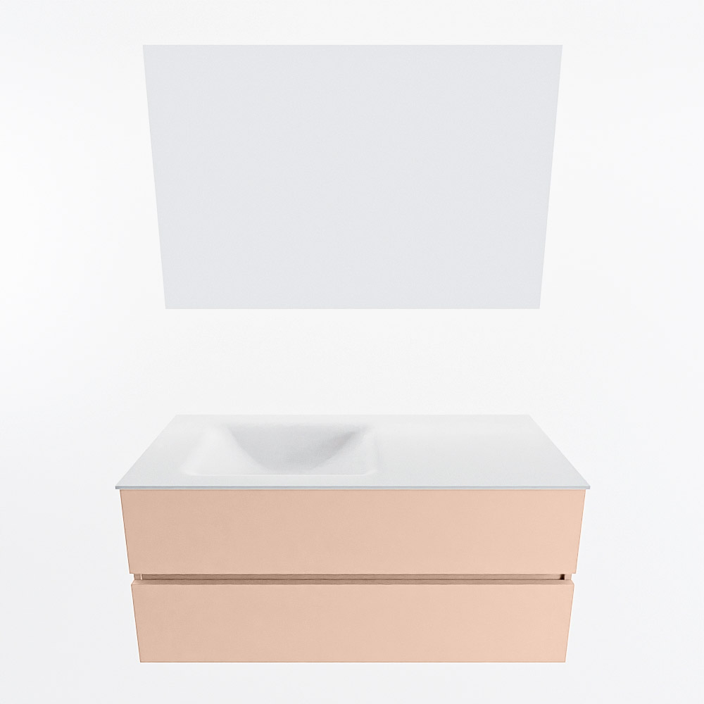 MONDIAZ VICA 120cm mueble de baño Talc 2 cajones lavabo MOON Doble sin orificio con espejo LED.