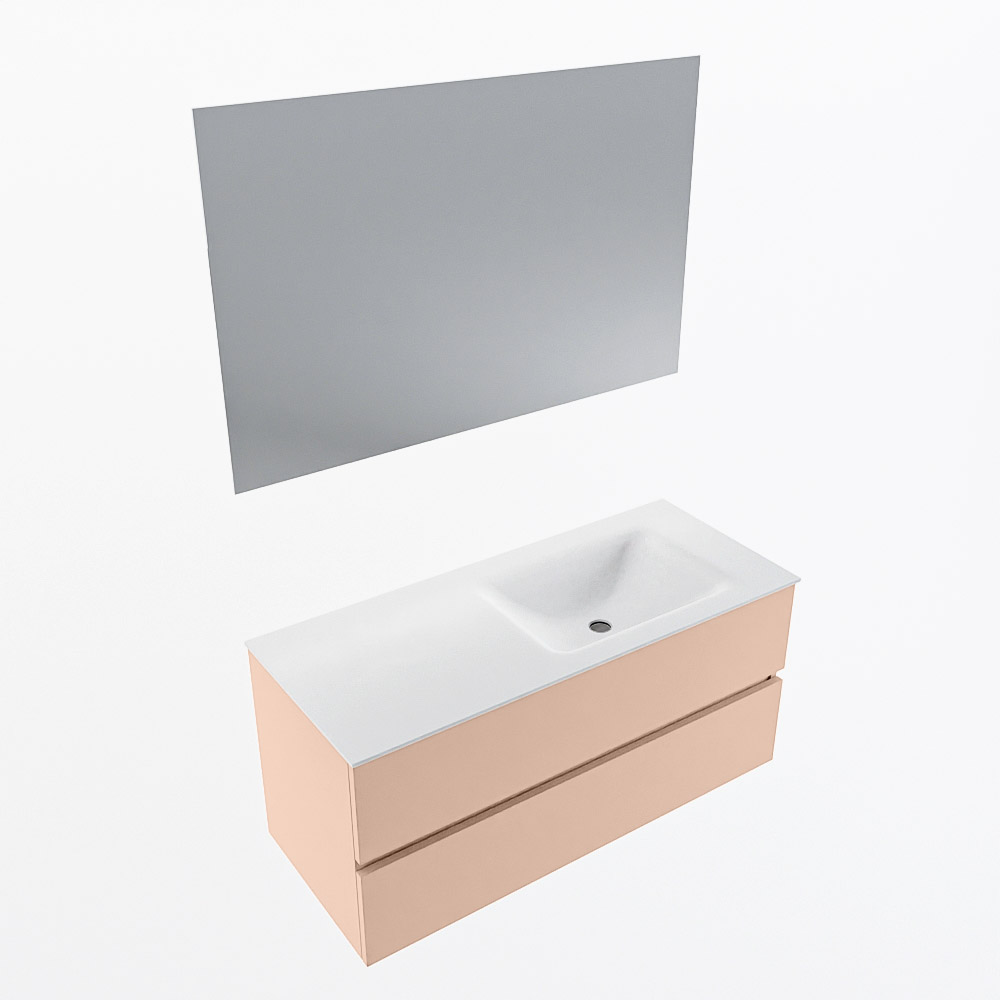MONDIAZ VICA 120cm mueble de baño Urban 2 cajones lavabo CLOUD Derecho sin orificio con espejo LED.