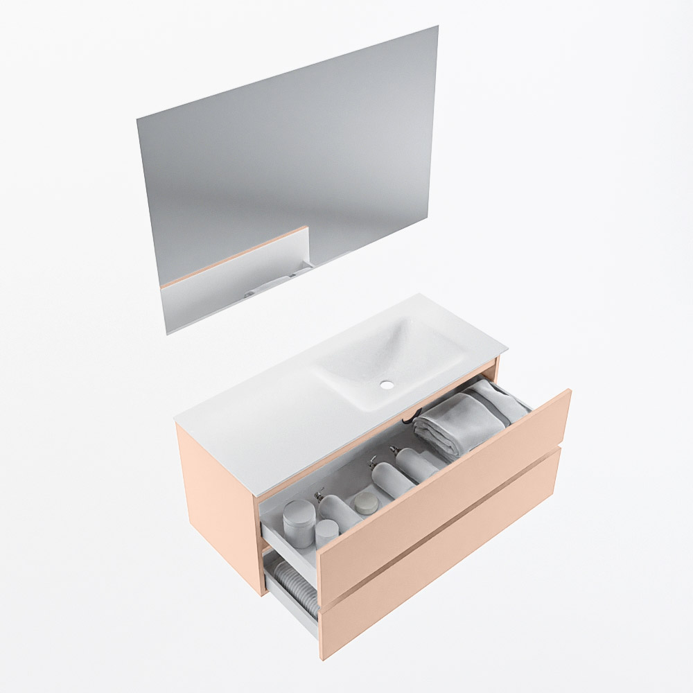MONDIAZ VICA 100cm mueble de baño Ocher 2 cajones lavabo CLOUD Derecho sin orificio.