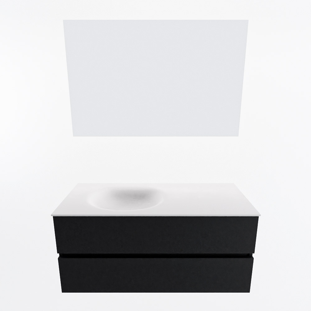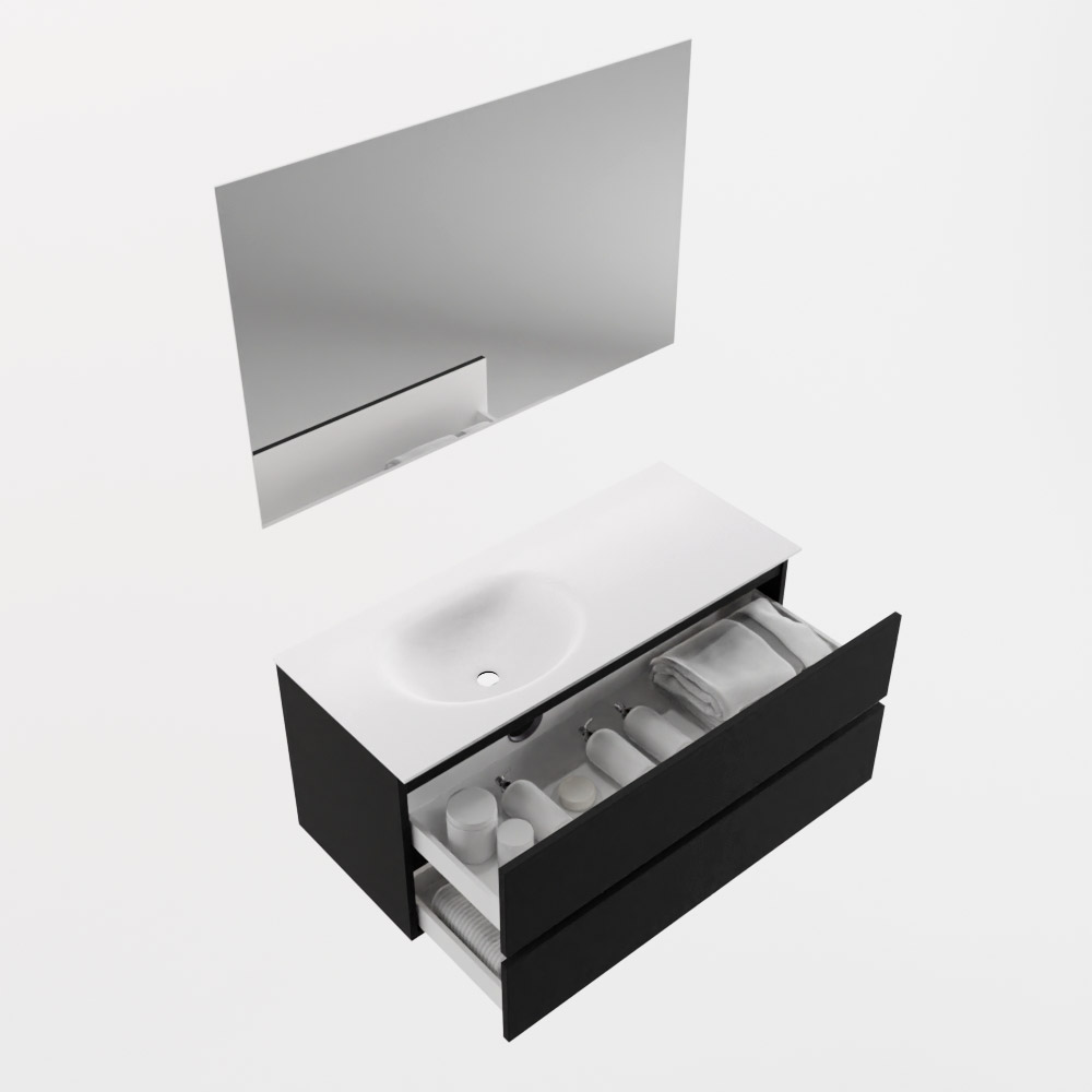 MONDIAZ RIVA 100cm mueble de baño / estante color Smoke con 1 cajón. Lavabo DULCET Izquierda 1 orificio, color Dark Grey.